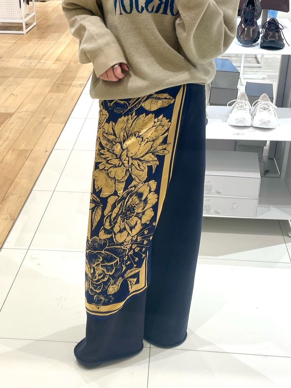 パンツの色とスカーフの色をリンクさせるとまとまり感がでておしゃれです✨