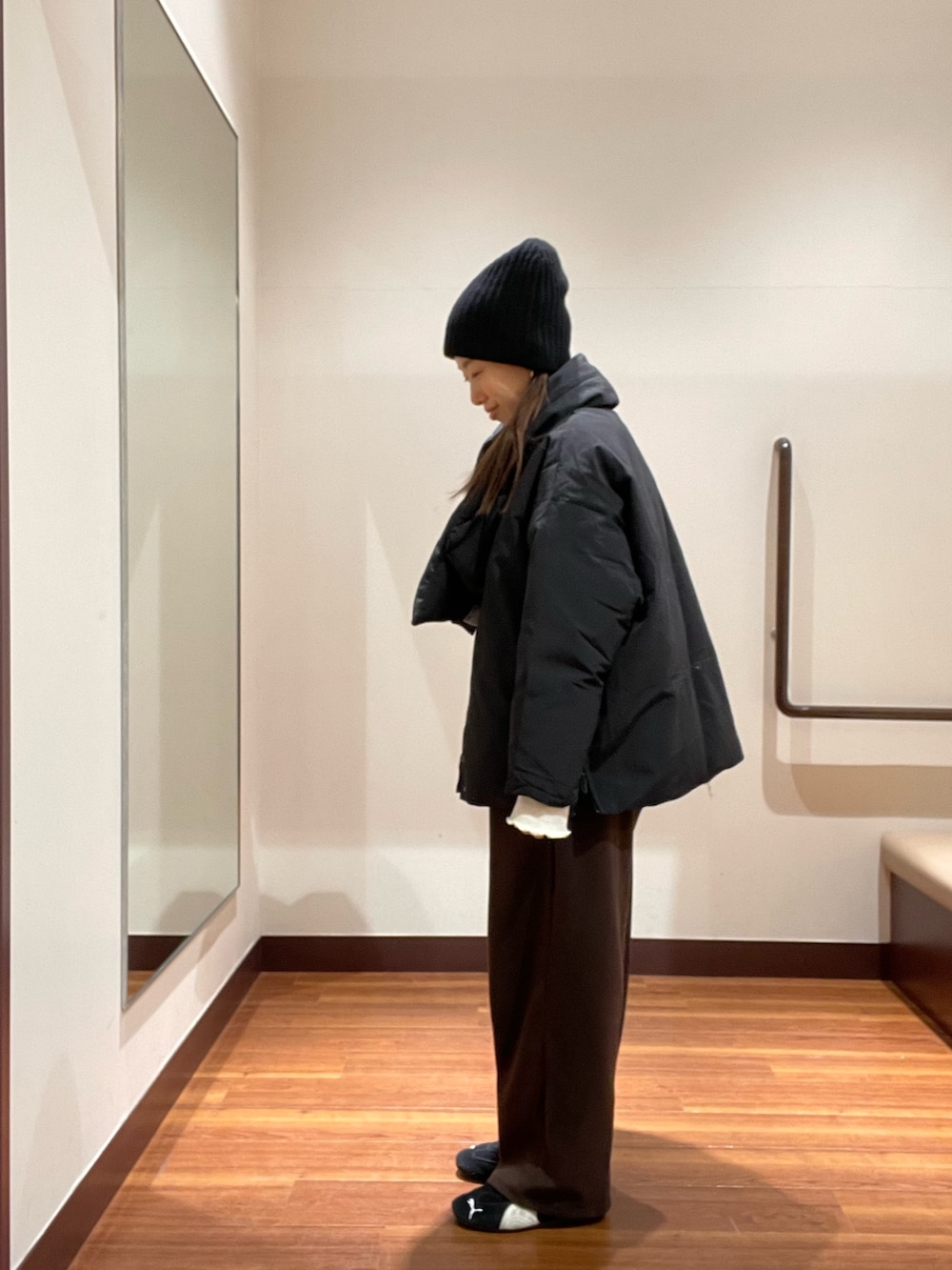 サイドにはジップがあり開けるとラインが変わり、中に着た服がアクセントになるのも可愛いですよ♡