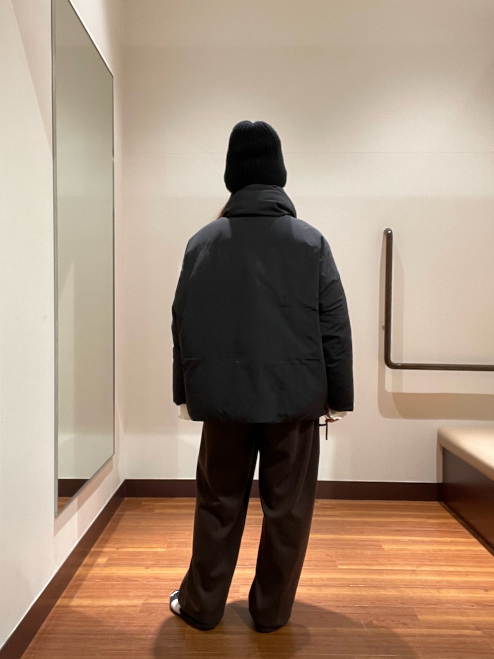 マフラーをとるとノーカラーのシンプルなデザインでキレイめなスタイルにも合わせやすいです!