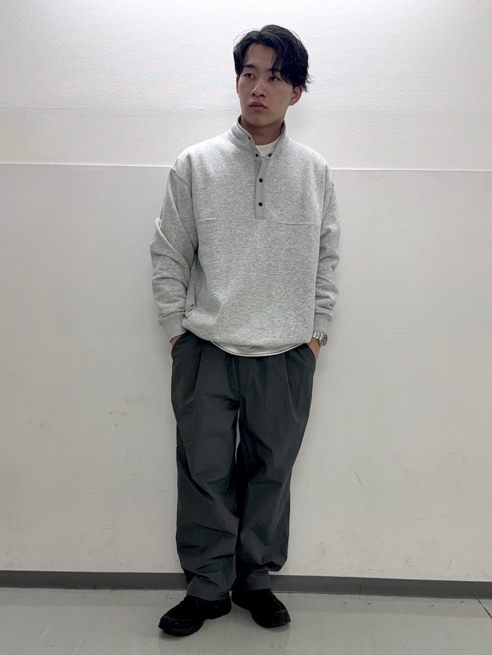 今回はEKALのスウェットとナイロンパンツを使ってコーデを組んでみました。