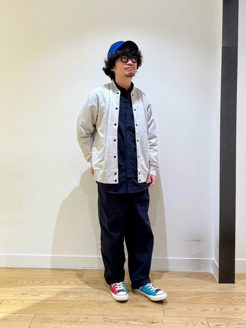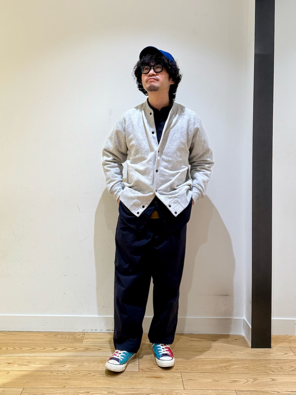 EKALのカーディガンをメインにコーディネート。