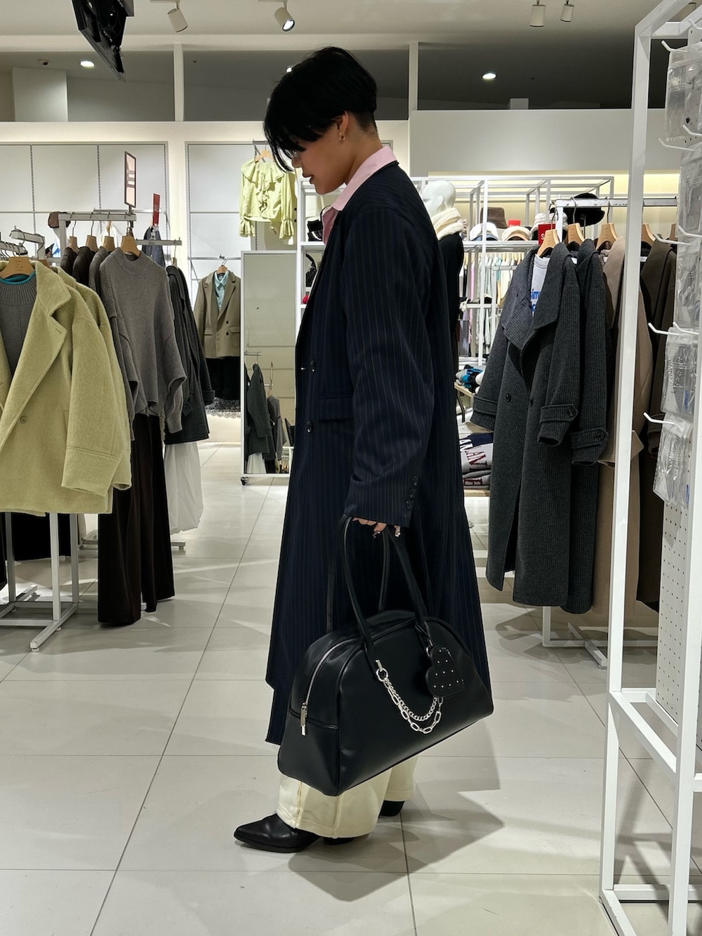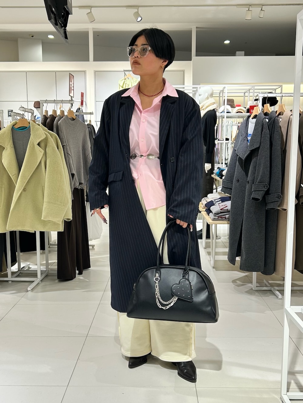着用アイテムは全てメンズですが、ピンクシャツでかっこいいスタイリングに甘さを入れてみました🩷🐶