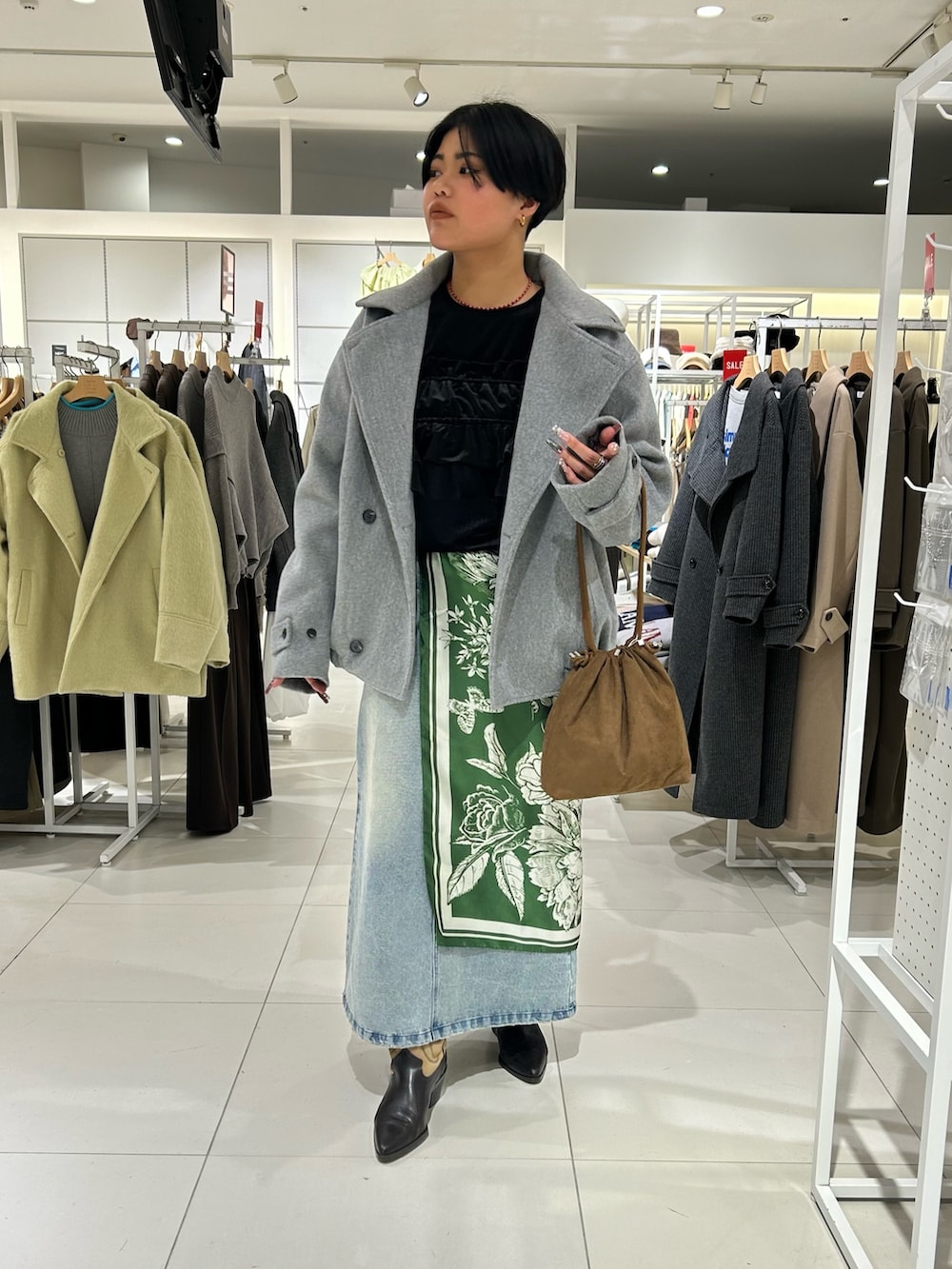 春っぽいデニムスカートには爽やかスカーフで、春を一足先に味わいましょう🎀^_^