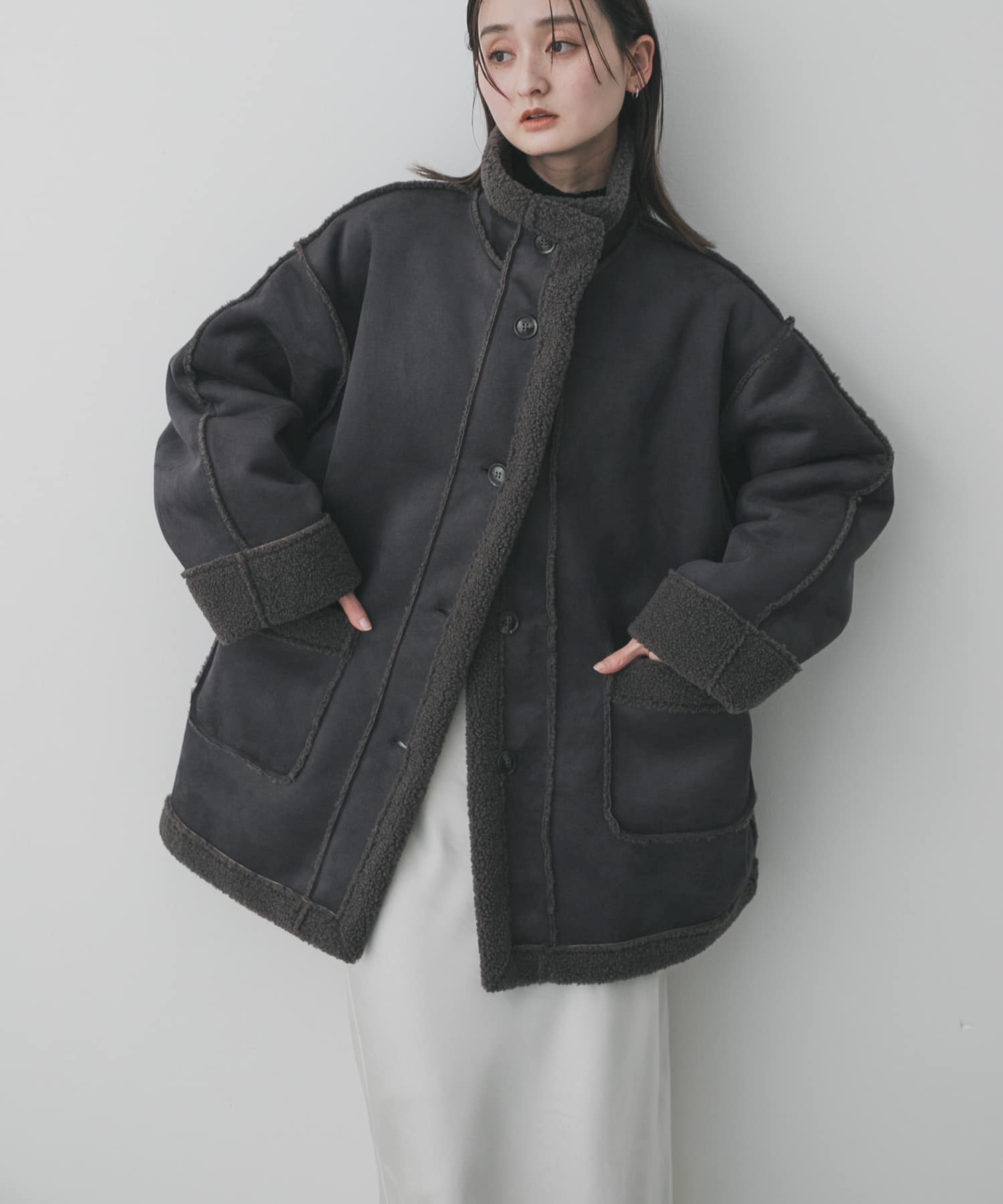 SENSE OF PLACEフェイクムートンスタンドジャケット- カラー:
