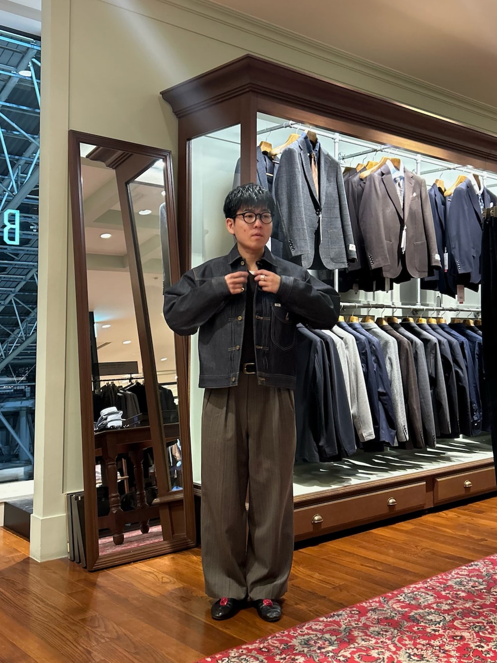 スラックス×革靴で合わせた時の品がある感じがとても好きです。