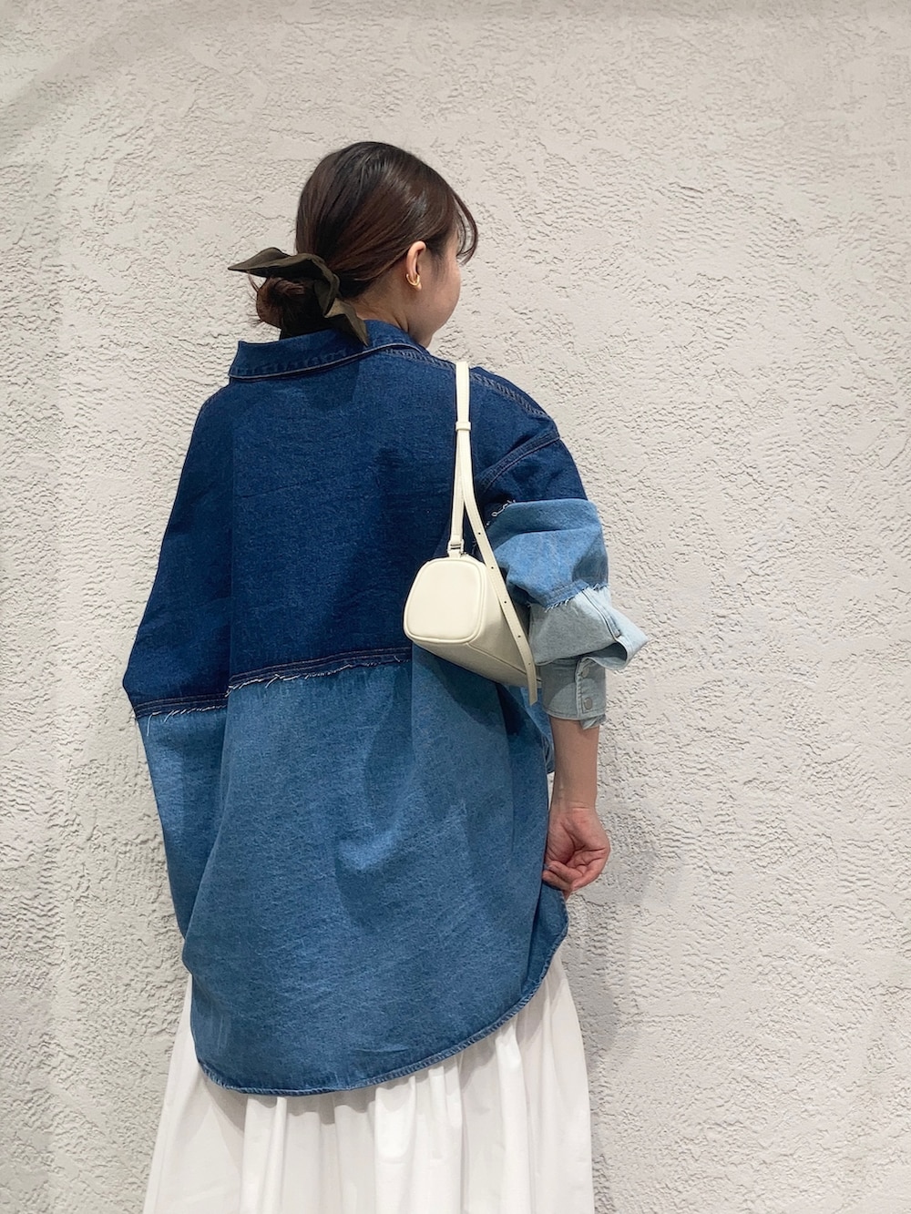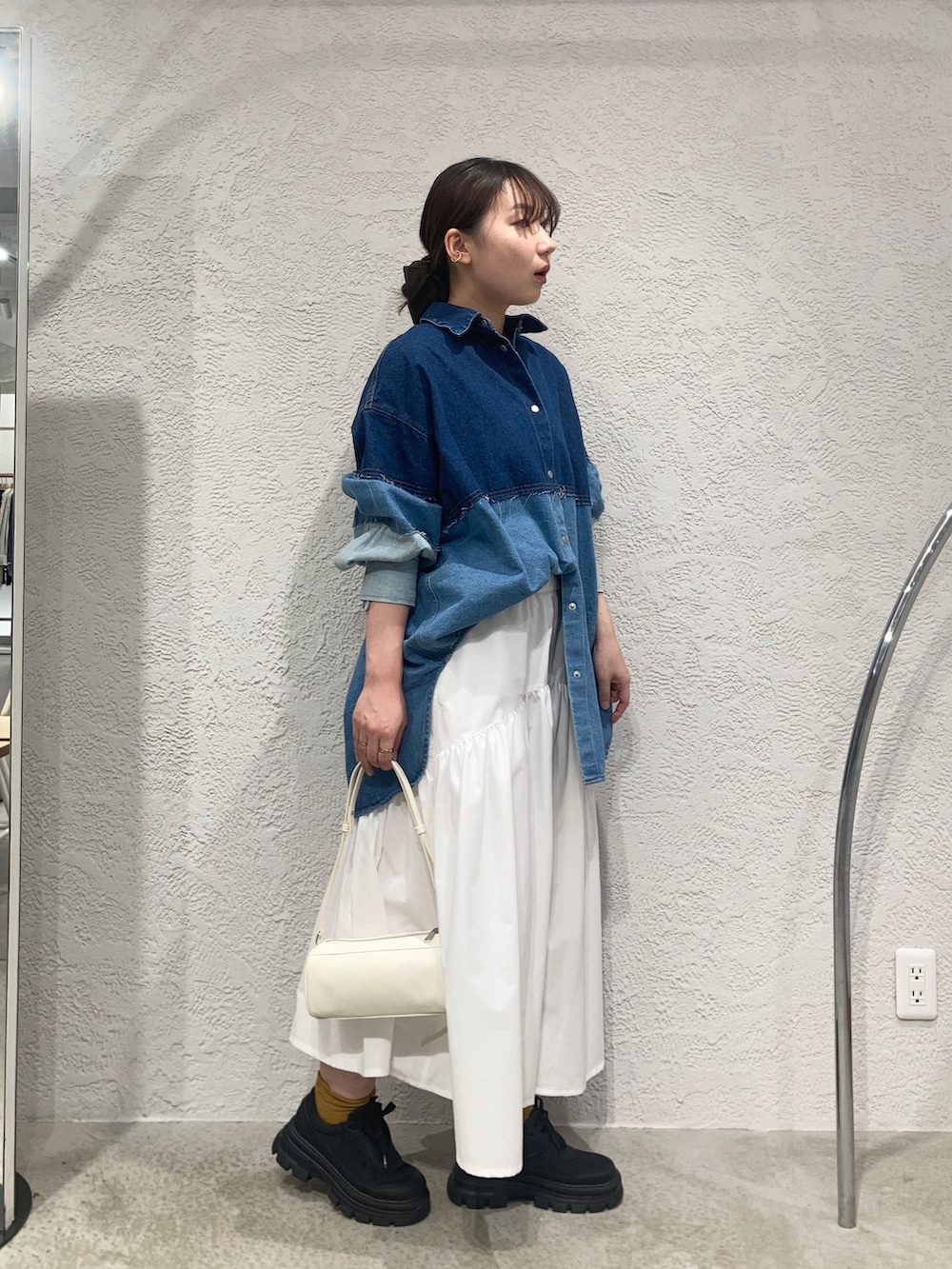 BIGシルエットのデニムシャツは合わせ方によってはメンズ味が強くなるので、ガーリーなボリュームスカートを合わせると大人かわいいバランスになります!