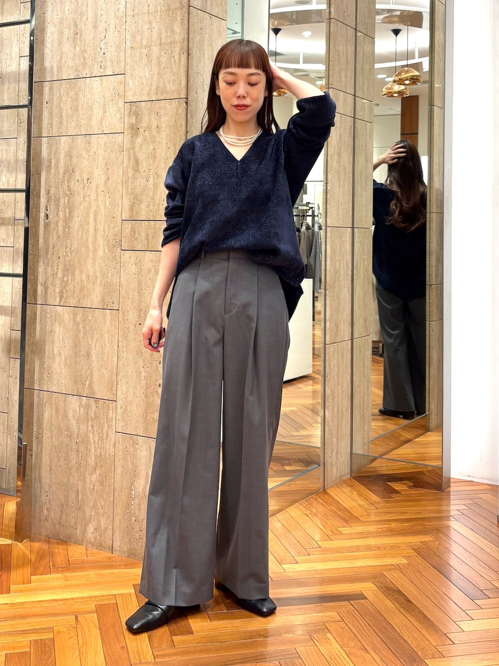 トップスはかなり深いVネックなので