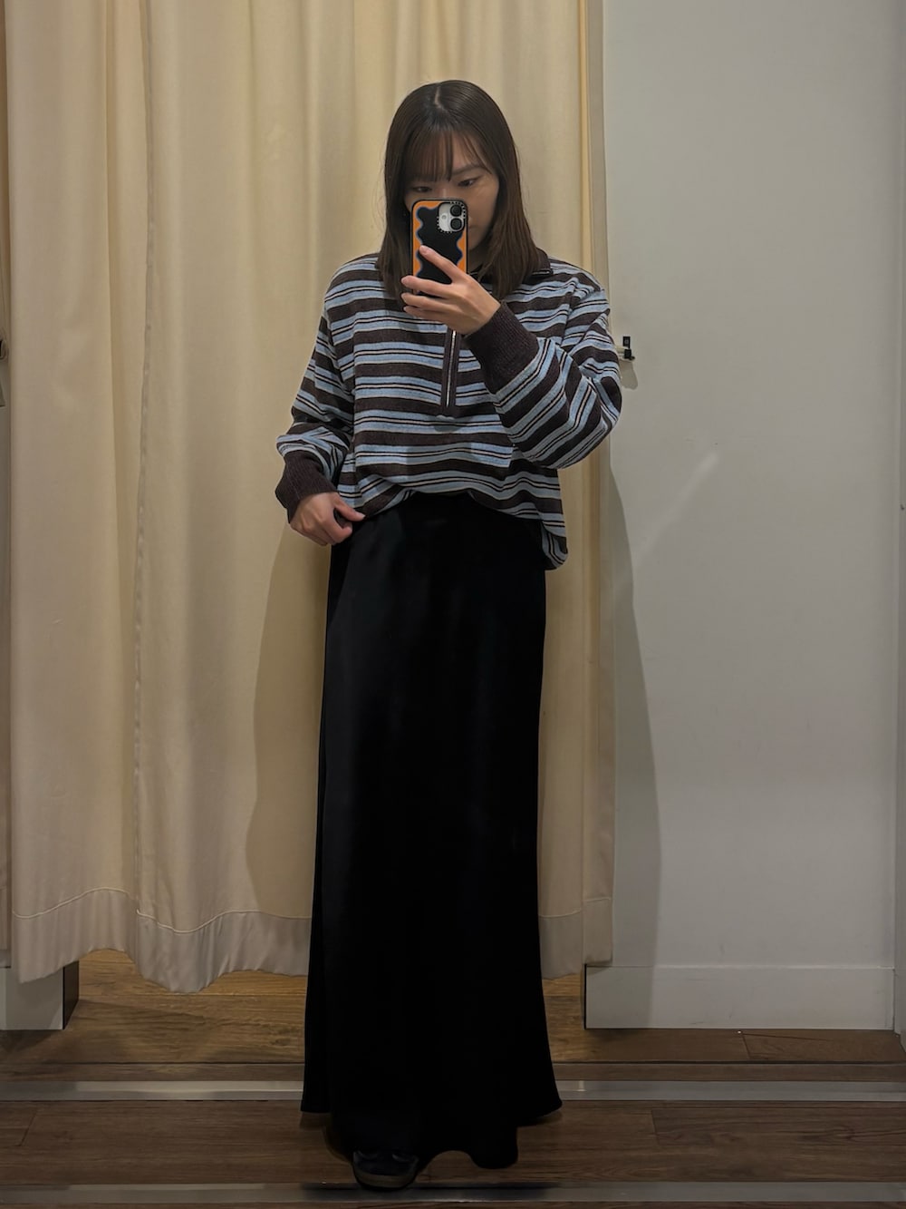 カジュアルにいきたいところをあえてスカートで綺麗めに