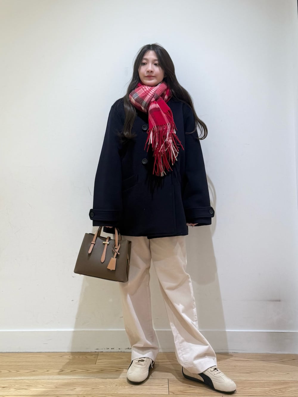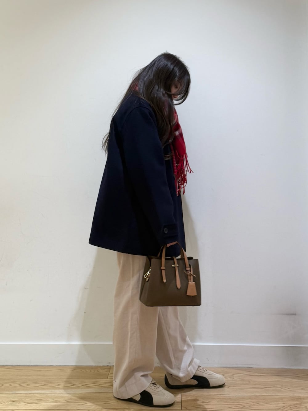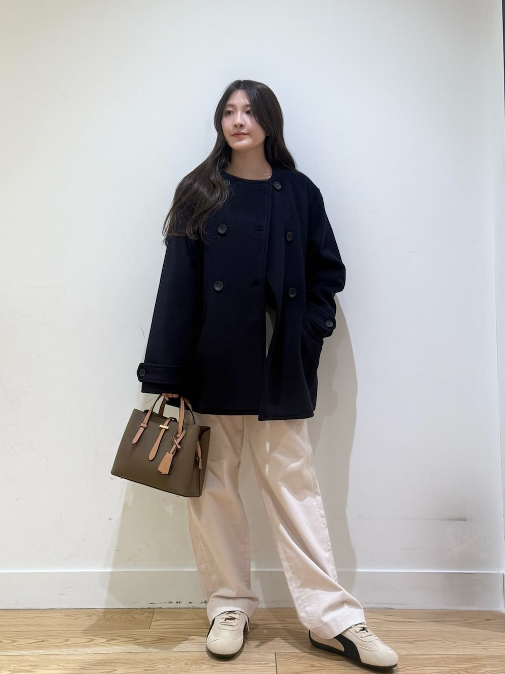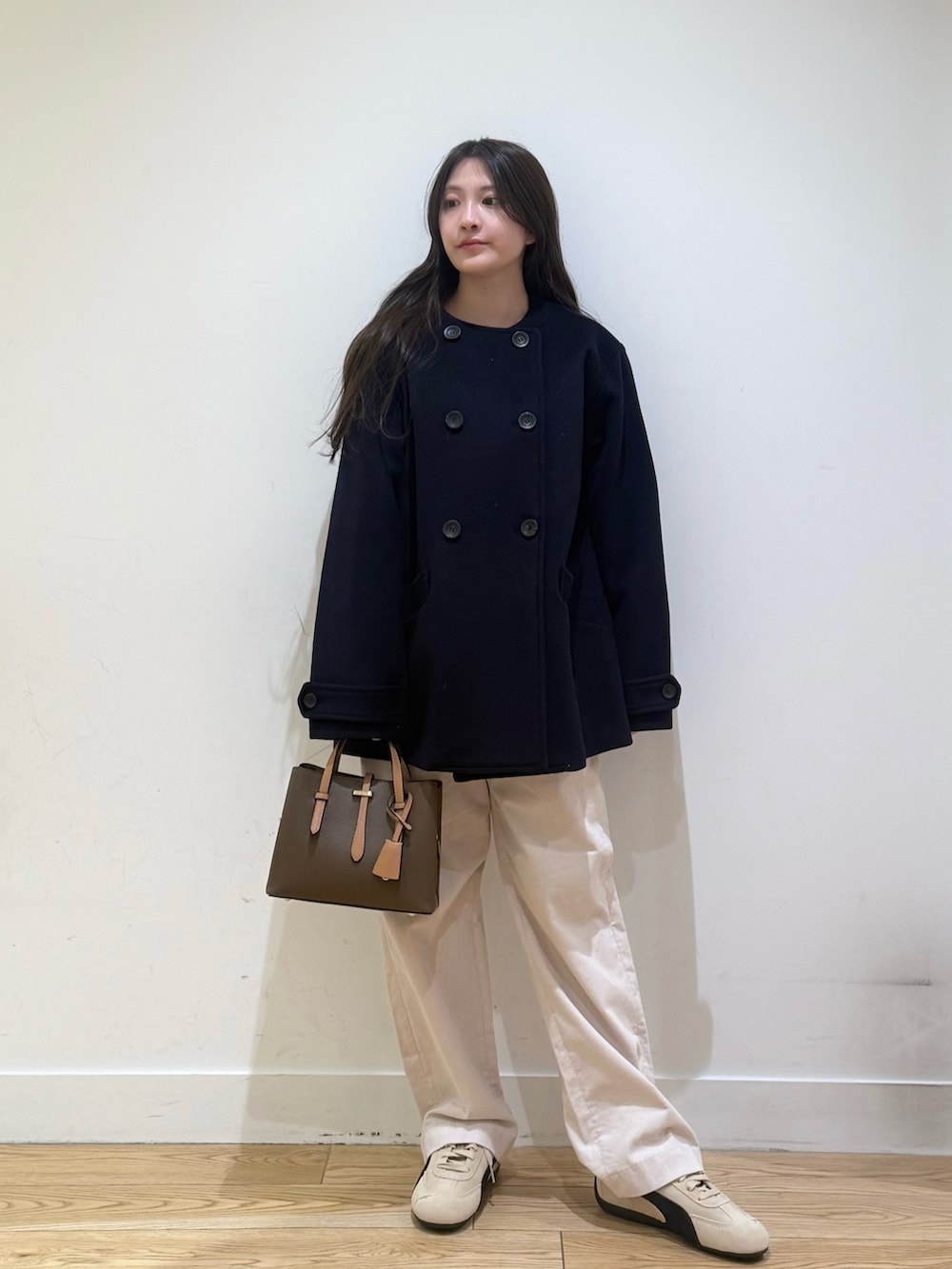 ノーカラーコートは、スカートともパンツとも相性が良いのでおすすめです!