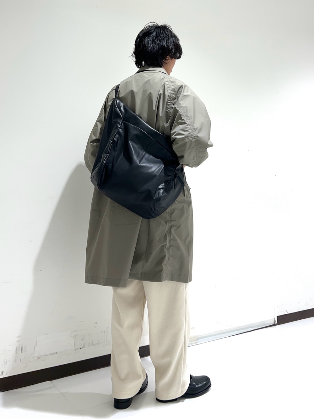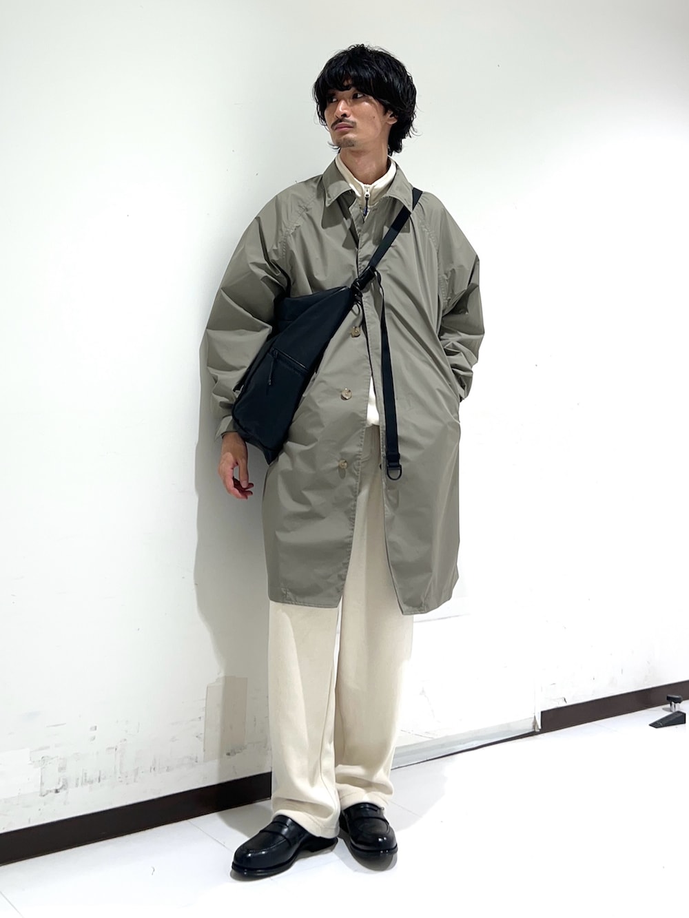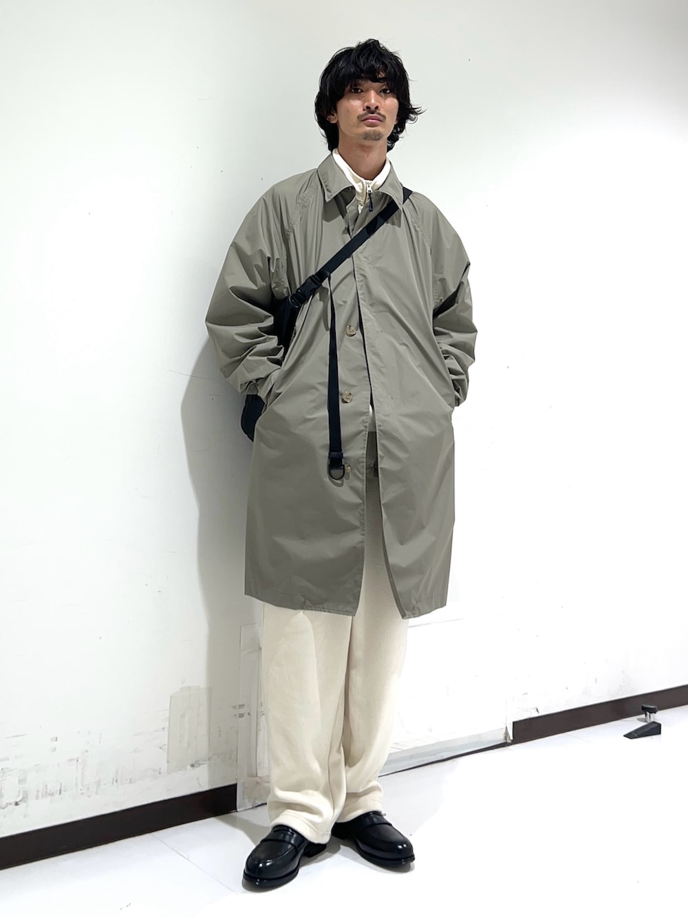 スウェットのセットアップにトレンチを羽織る海外スタイルと同じように。街で機能性を発揮するラフスタイリングです。