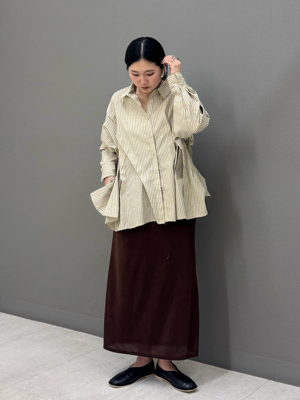 今回は新作のイージースカートと合わせて女性らしい印象に