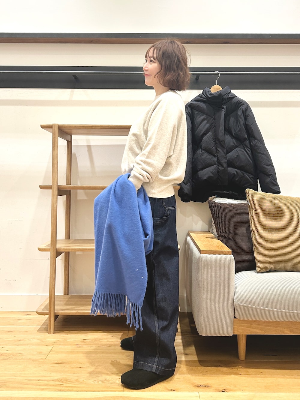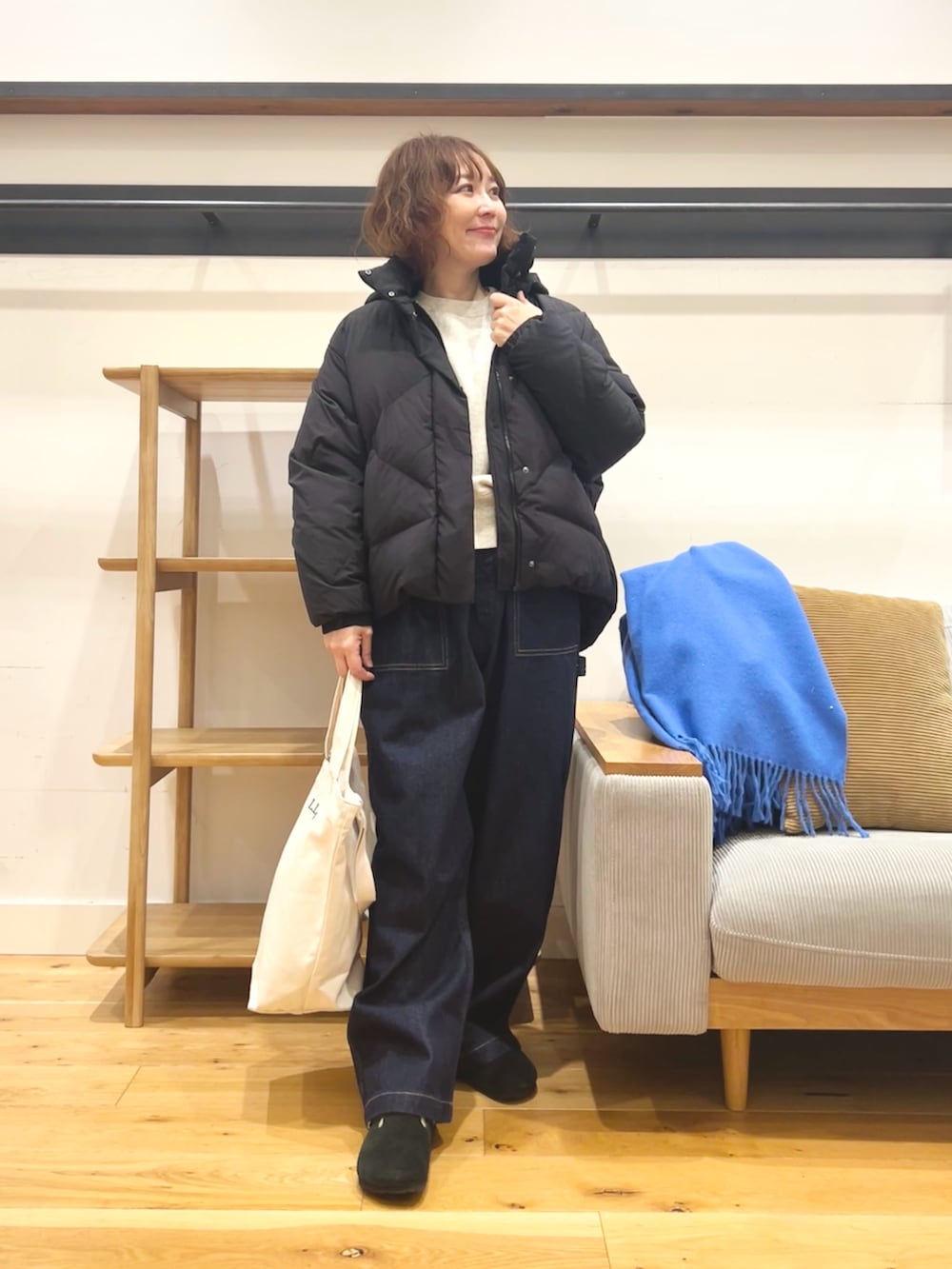 結構ゆったりした太さですが、ストレートシルエットで案外すっきり見えが叶います。