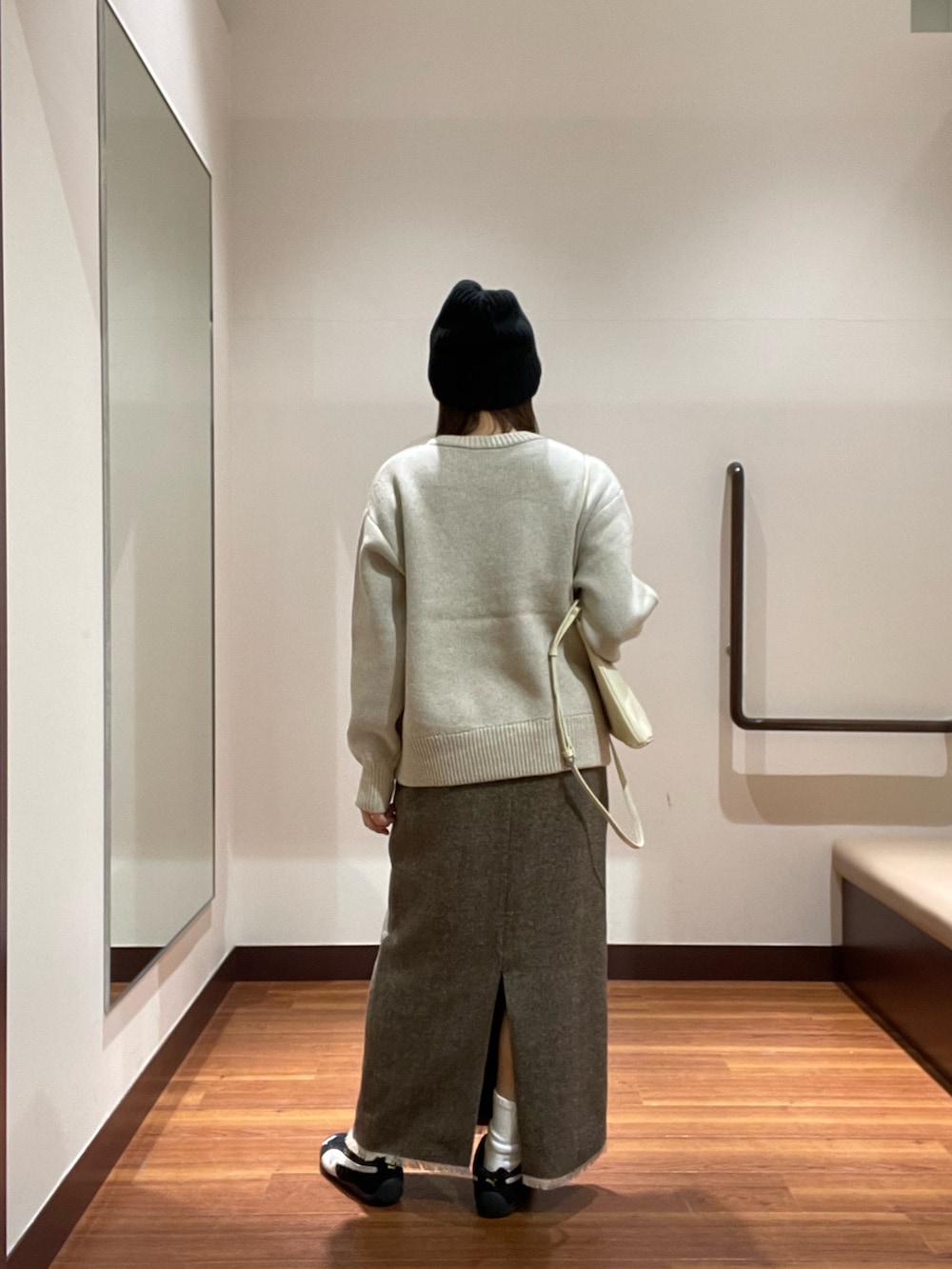 ロゴニットはスカートにもパンツにも合わせやすくカジュアルにも可愛くもコーディネートしやすいのでオススメです‼︎