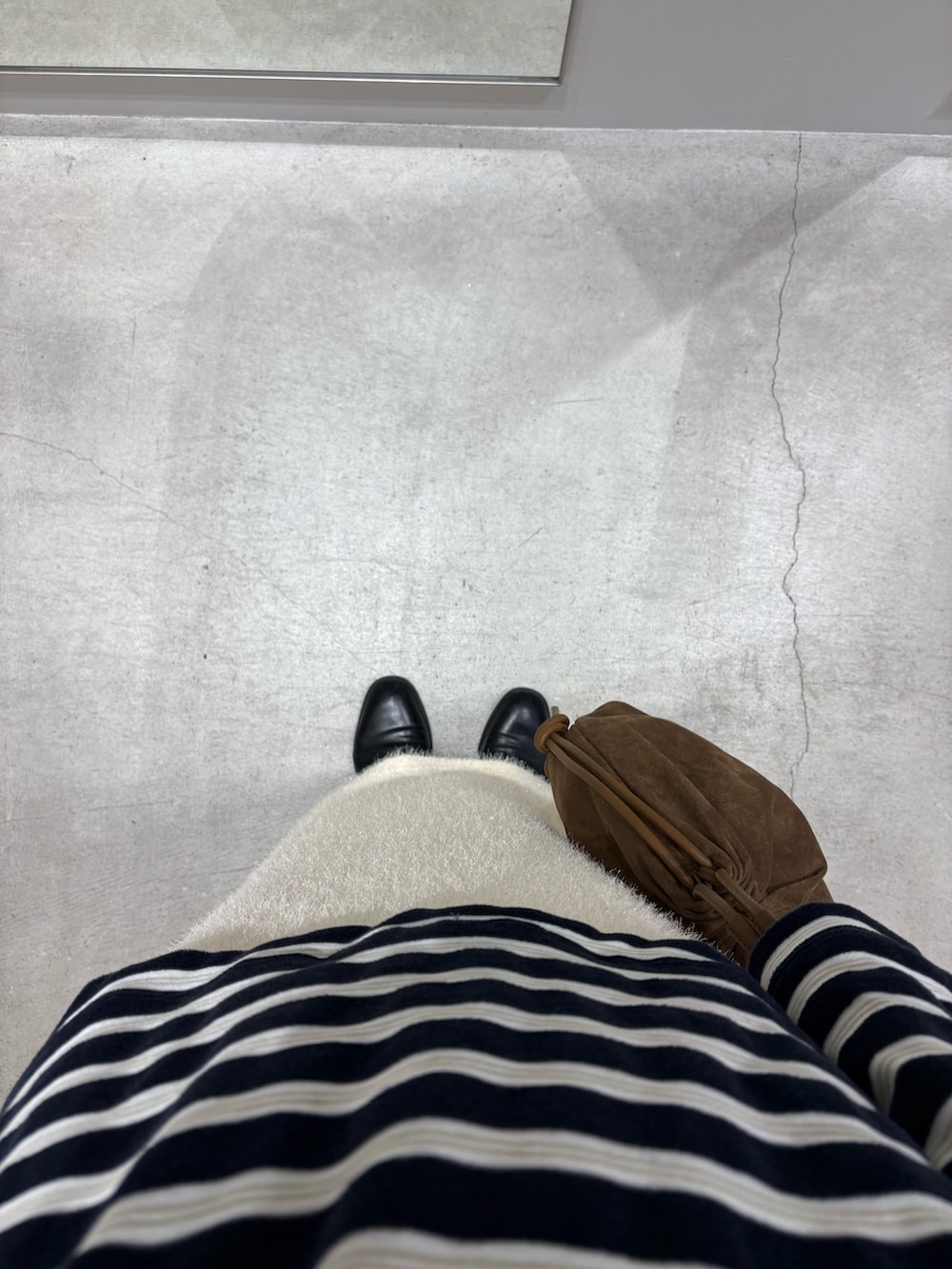 スカートの素材感がアクセントになってシンプルな組み合わせでも映えるコーデに