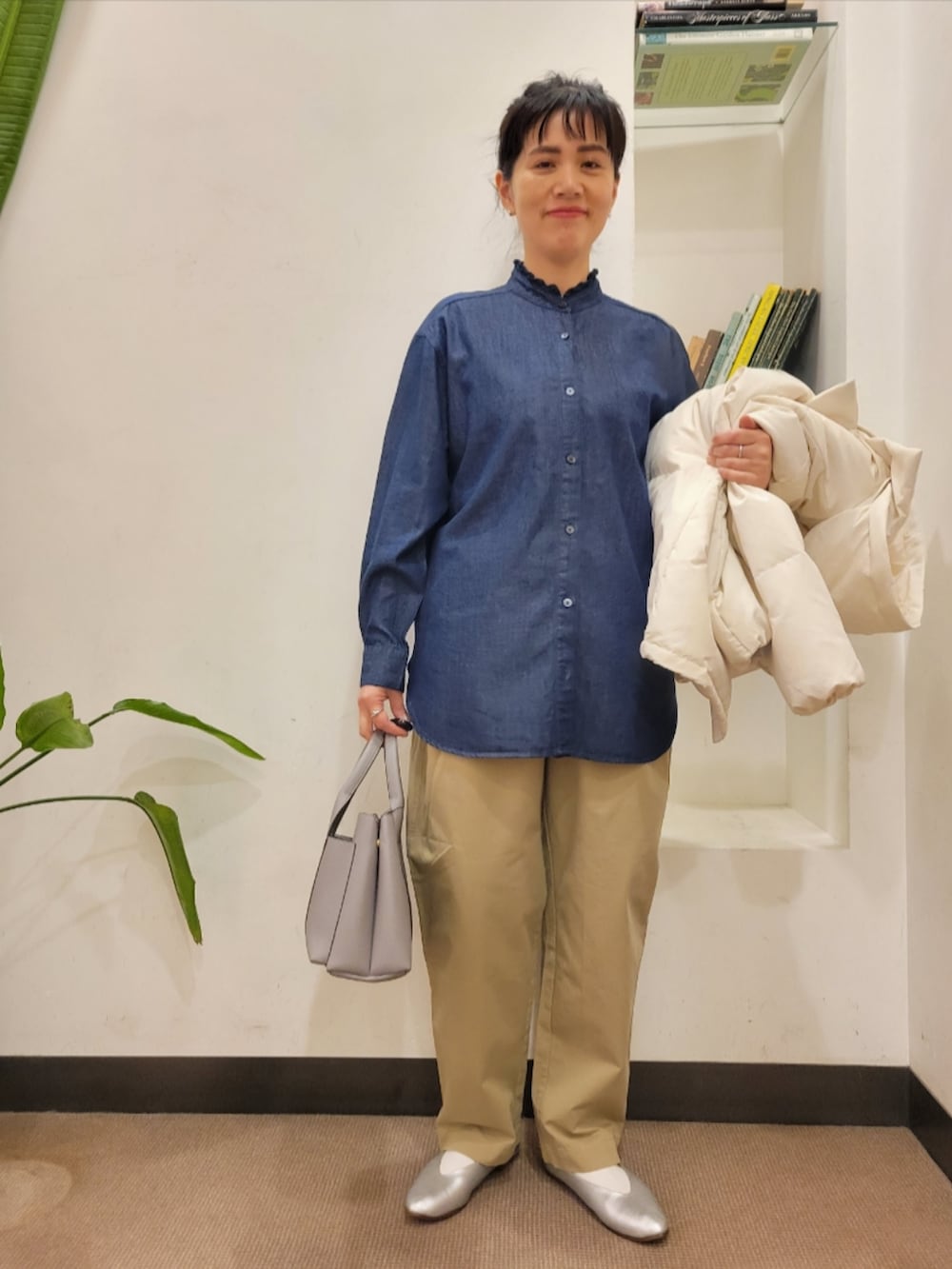 DOORSデニムフリルスタンドシャツ- 着用カラー: