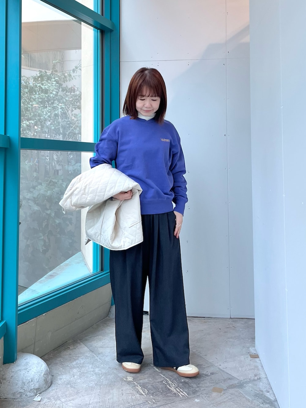 でも寒いのでテレコタートルをインナーに着て、ウールの入ったパンツを履いています。