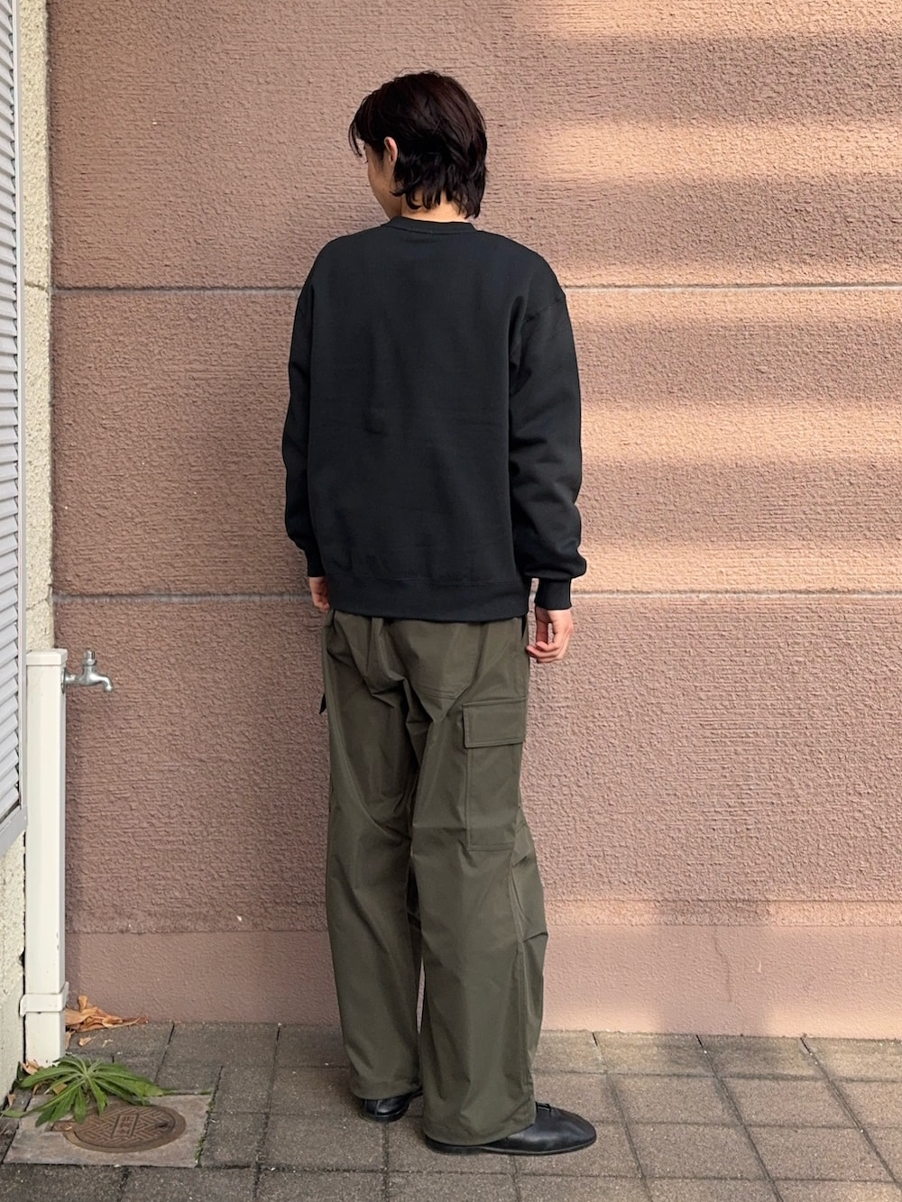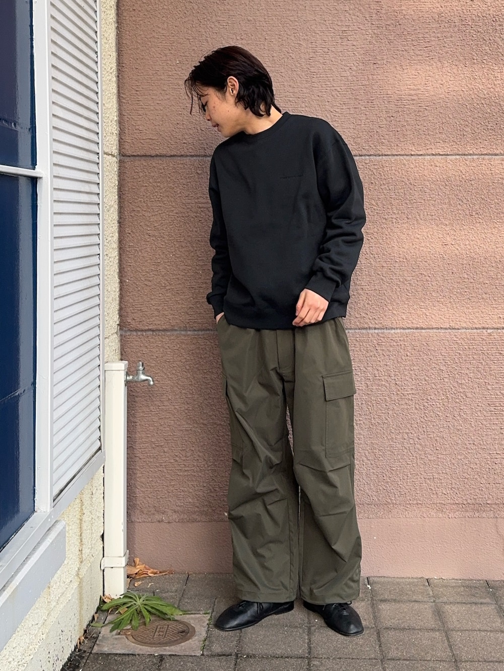 今回のコーディネートは黒のシンプルなスウェットにカーゴパンツを合わせました!スウェットは発熱機能になっていて、中は裏起毛でとても暖かいです!インナーで着れば、真冬でも快適に過ごしていただけます!カーゴパンツはシンプルで使いやすいアイテムです!楽に履いていただけます!