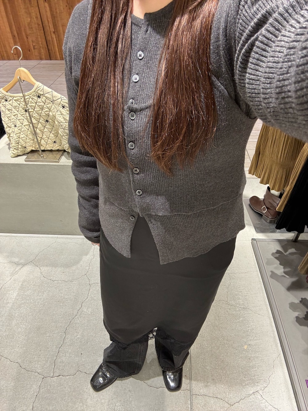 履いてみた感じ、サイズ展開がS・Mなのですが、ウエスト周りが少しタイトなので下腹が出てきた私はMサイズがジャストサイズでした( ◠‿◠ )長さは少し裾が床に着くぐらいなので、ボリューム感のあるスニーカーで裾をたゆませたり、キレイめブーツでスッキリ見せたりと色んな着丈ができそうでした🫶🏻