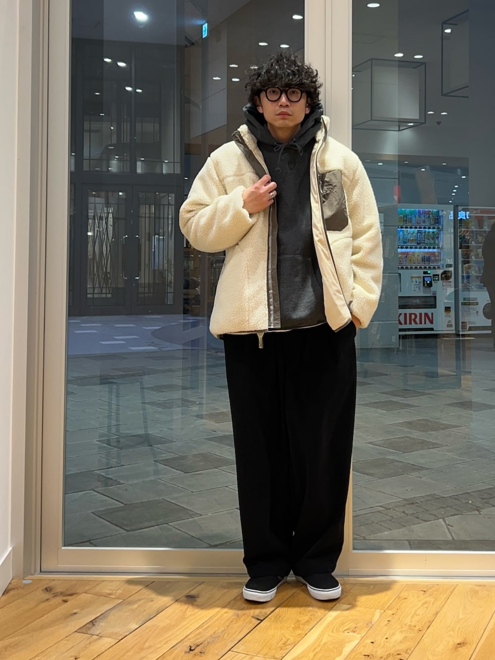 もちろん今の時期でも着用できボアで可愛らしさがあるのでインナーとボトムスは黒でシックに!
