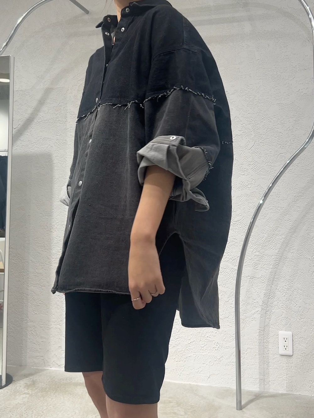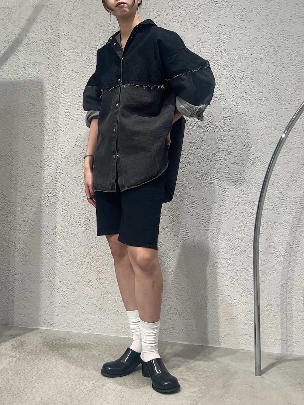 デニムシャツとハーフパンツを合わせたカジュアルコーデ!