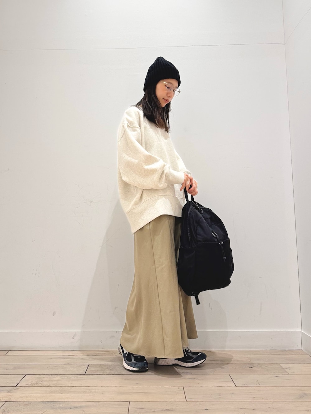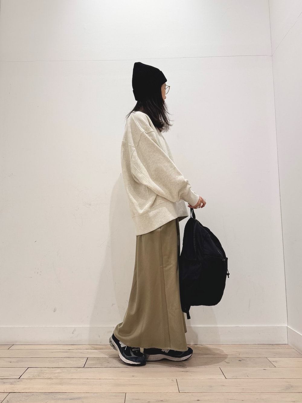 丸みのあるシルエットでストレートのボトムと相性いいです👖