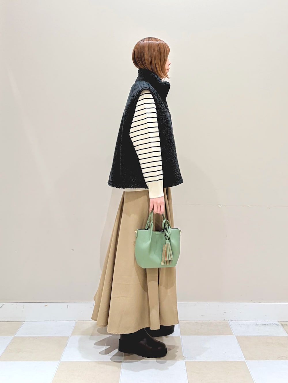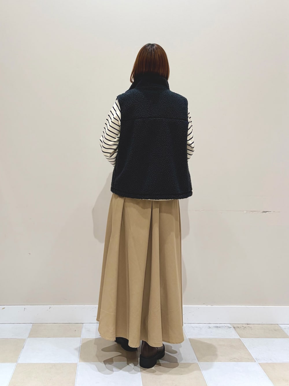 ボアジップベストに、ニットとワンピースのセットアイテムのコーディネートです!