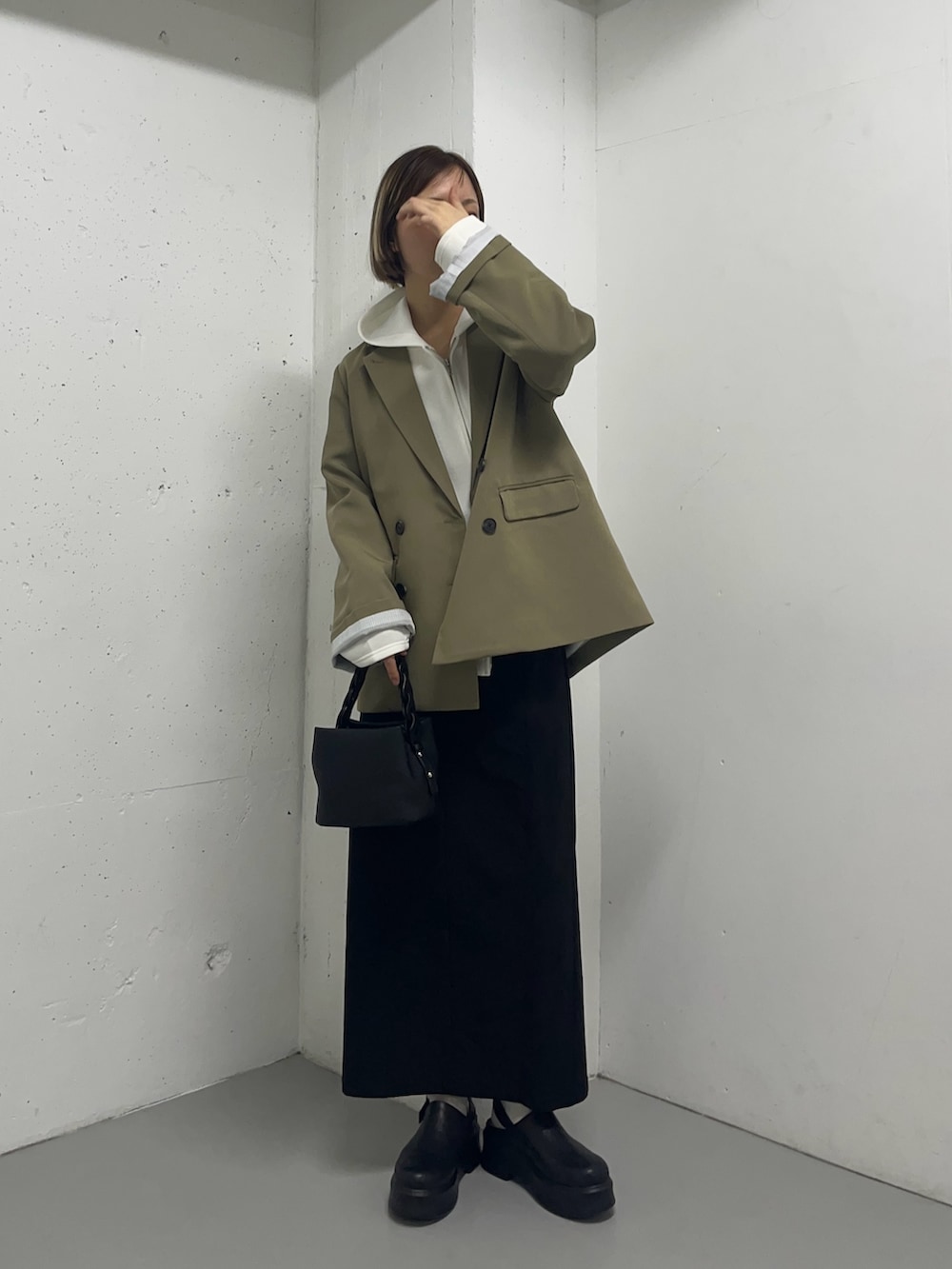 ワイドスリーブなので、中に厚手のニットやスウェット、パーカーも着ることができます。