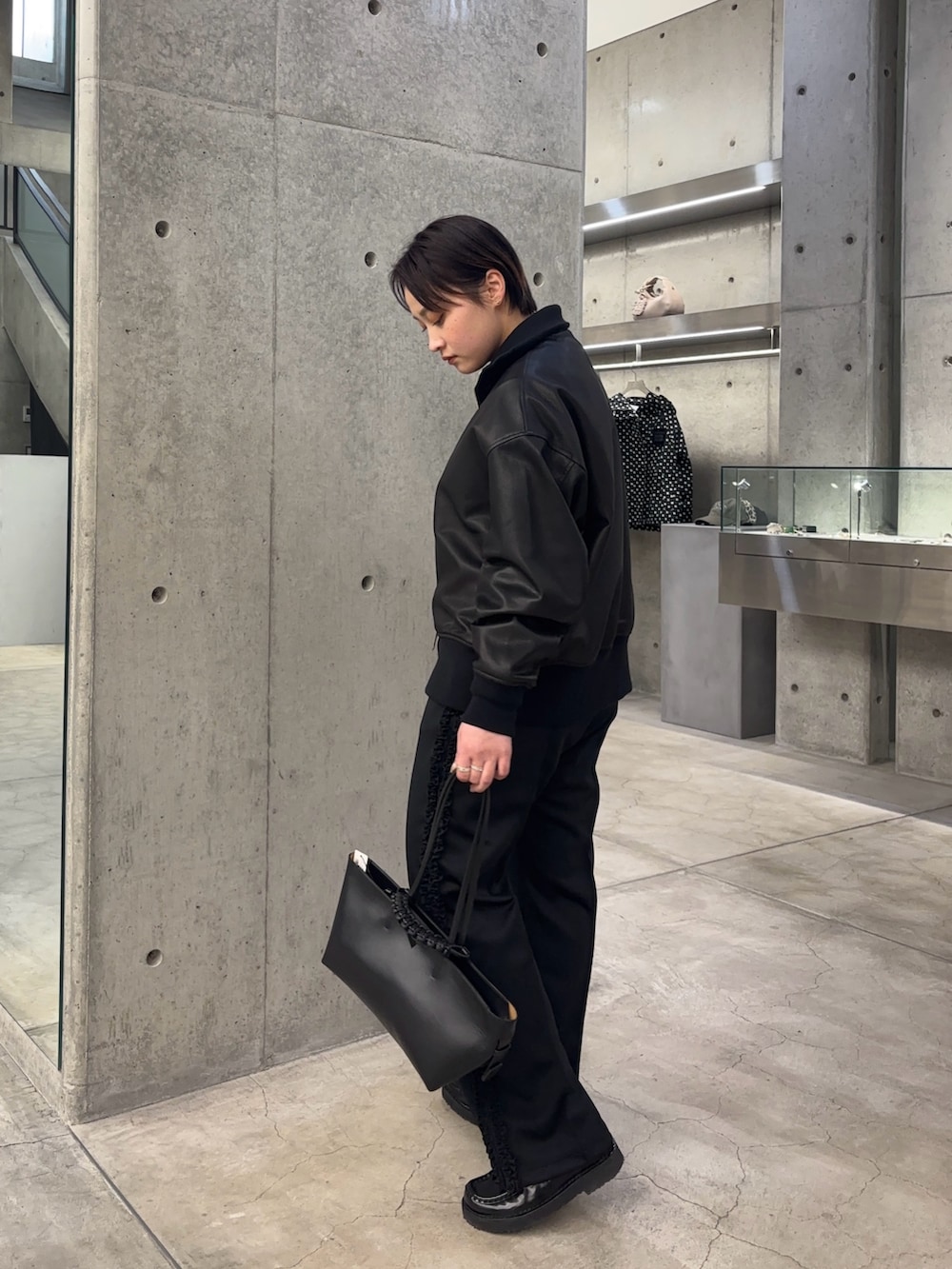 別注で新作のクリンクルのパンツは、サイドにフリルと、裾にはジップも付いており、ブラックでまとめた時にのっぺりしがちなコーデのアクセントになります!