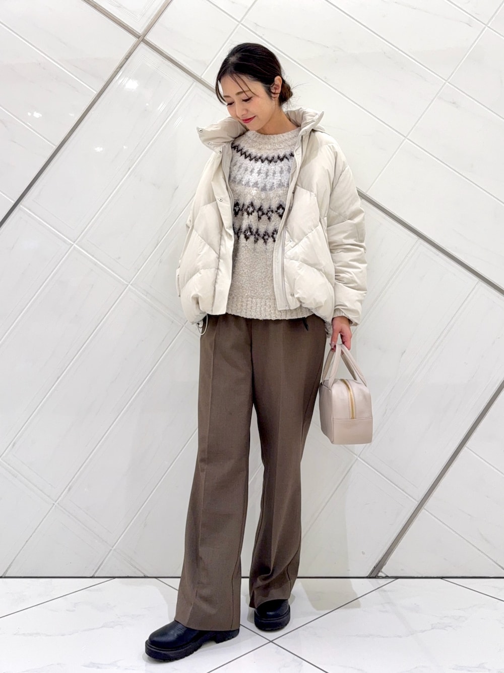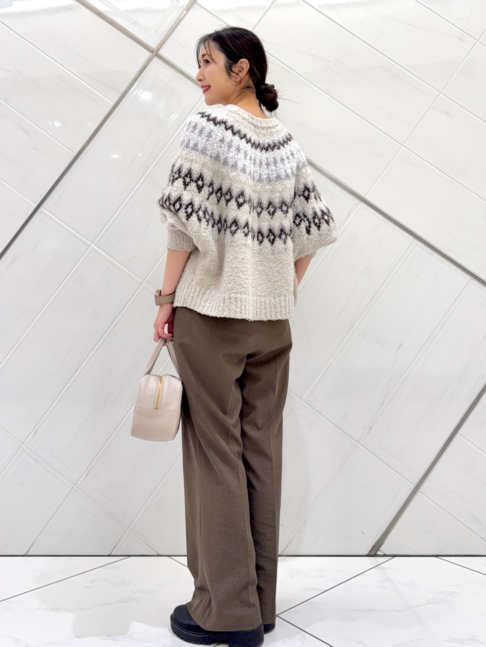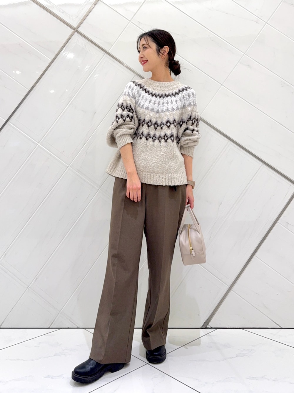 ボトムは企画のアイテムで、ややセミフレアシルエットで細見えし、着回しの効く1本なので重宝するのでおすすめです。
