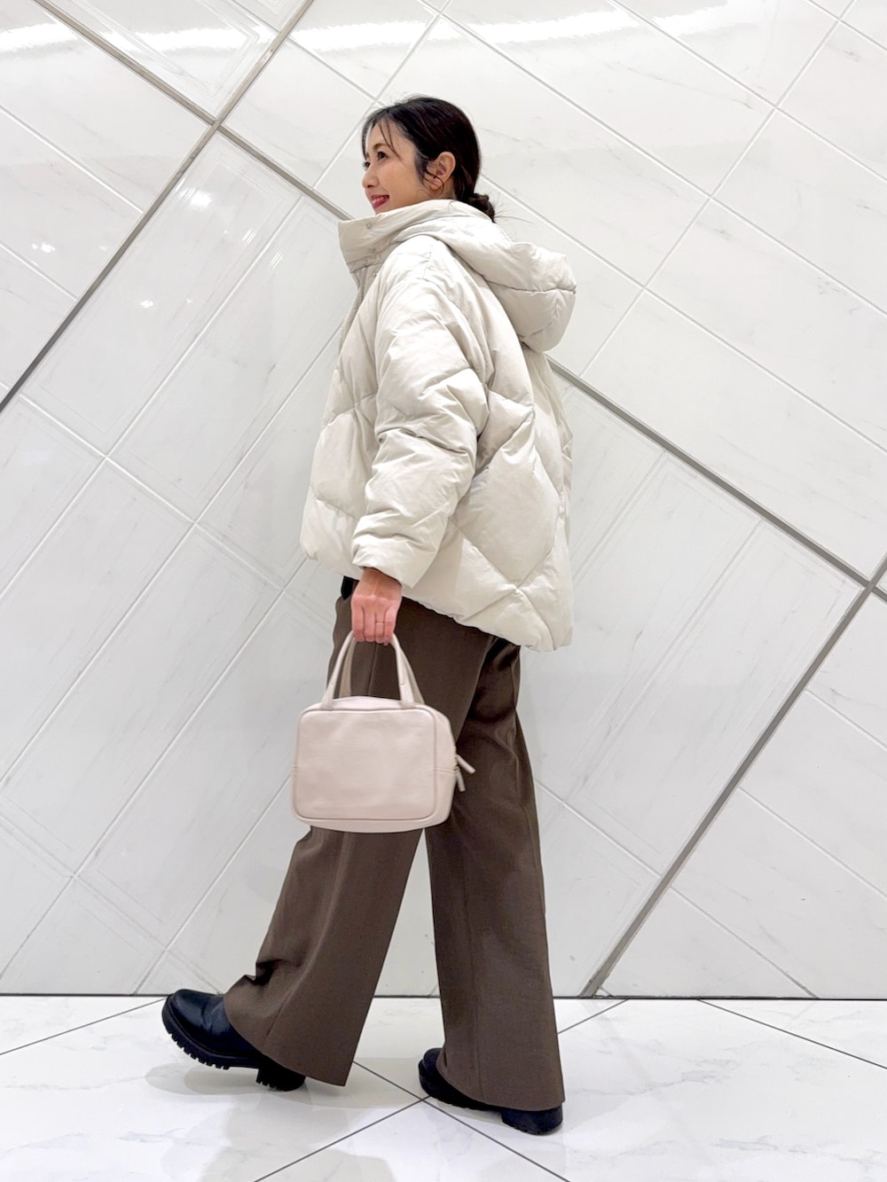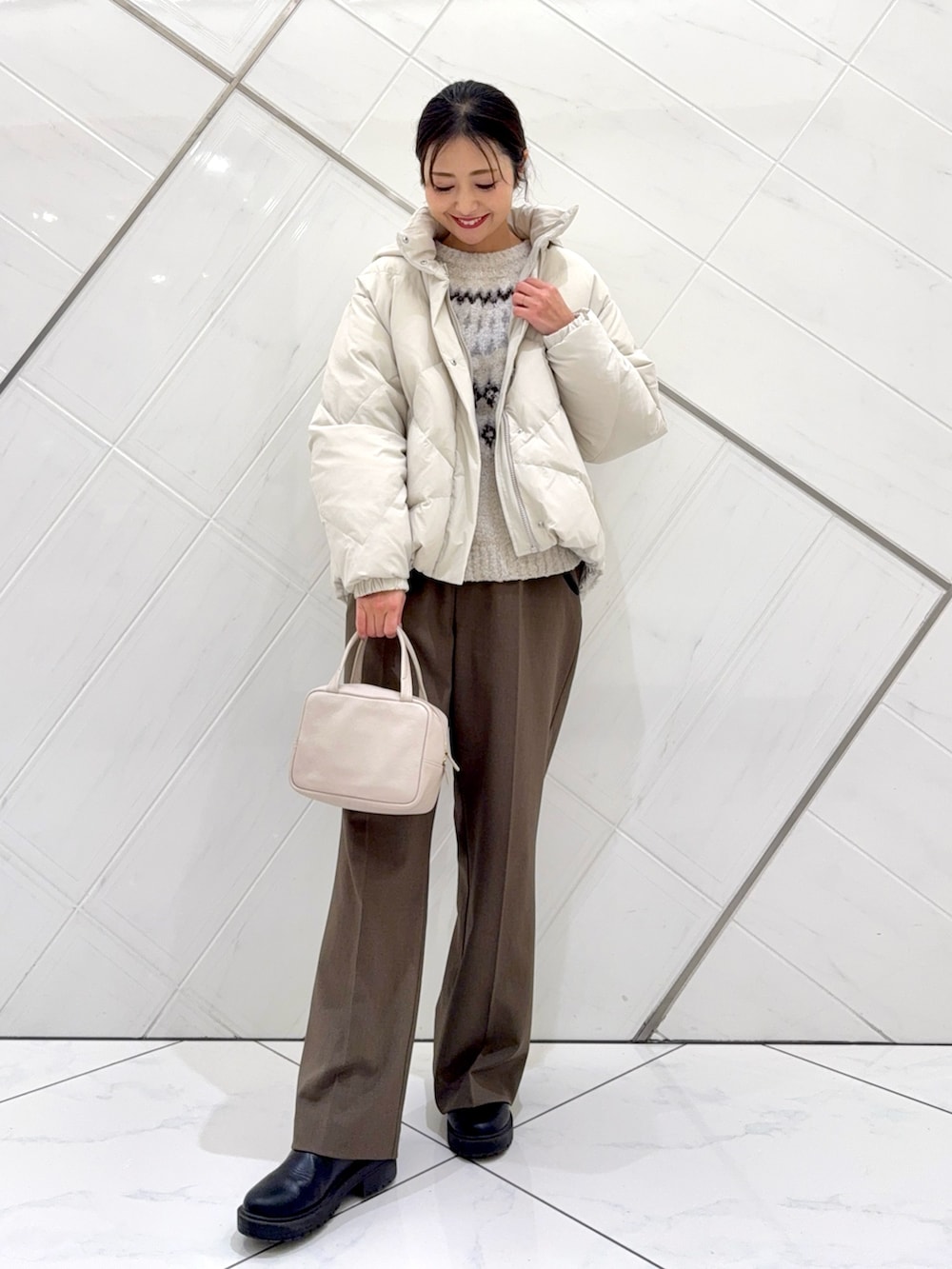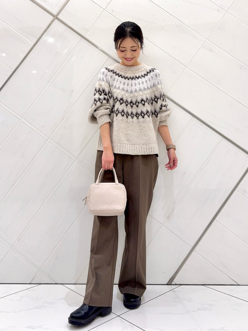 ボトムは企画のアイテムで、ややセミフレアシルエットで細見えし、着回しの効く1本なので重宝するのでおすすめです。