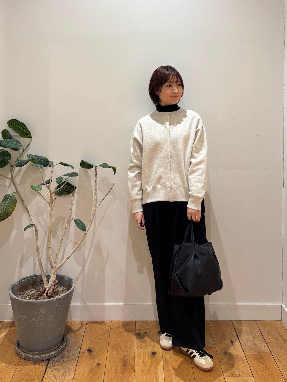 寒い日はタートルネックを合わせがちですが、このタートルネックは肌に触れる部分が柔らかく着心地が良いのでおすすめですよ◎