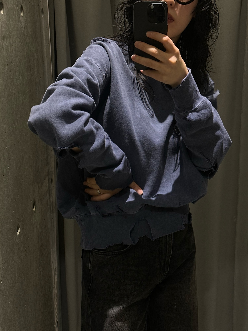 URBAN RESEARCHKURO MORE DAMAGE WASHED SWEAT- 着用カラー: