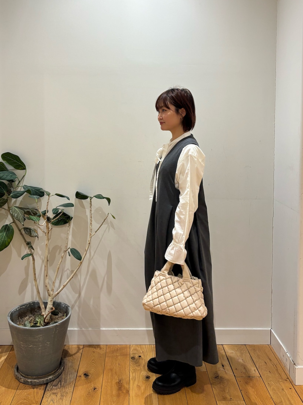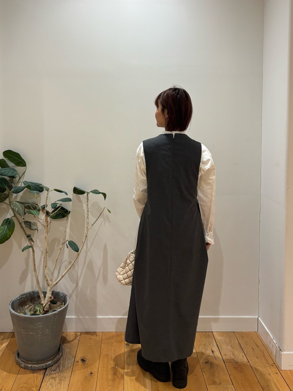 ウエストにタックが入っているので脚長効果になるジャンスカはオケージョンにもプライベートでも使えるアイテムです😊