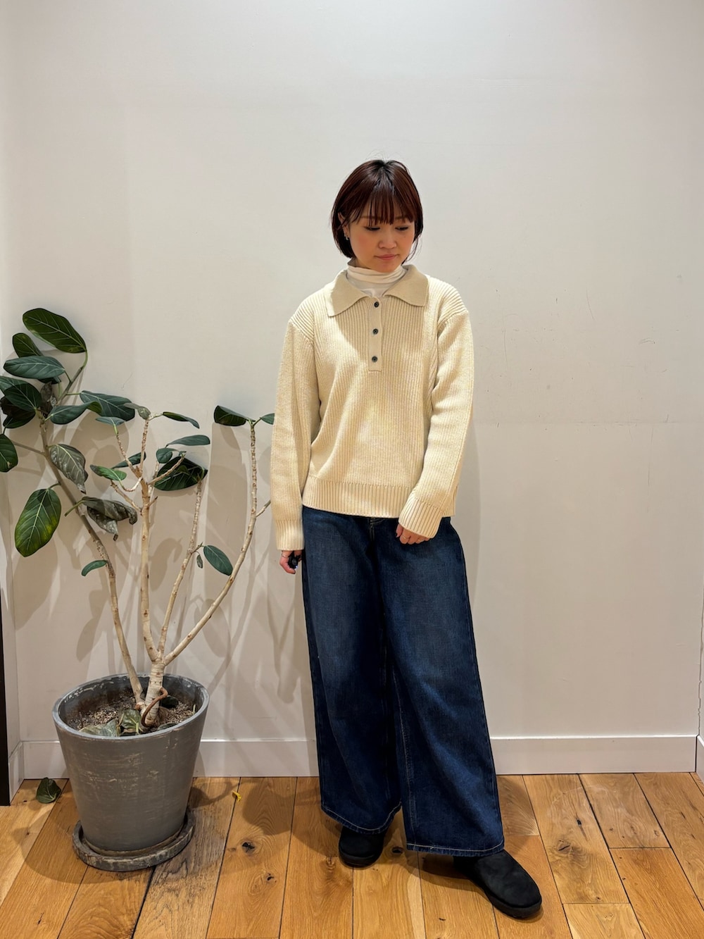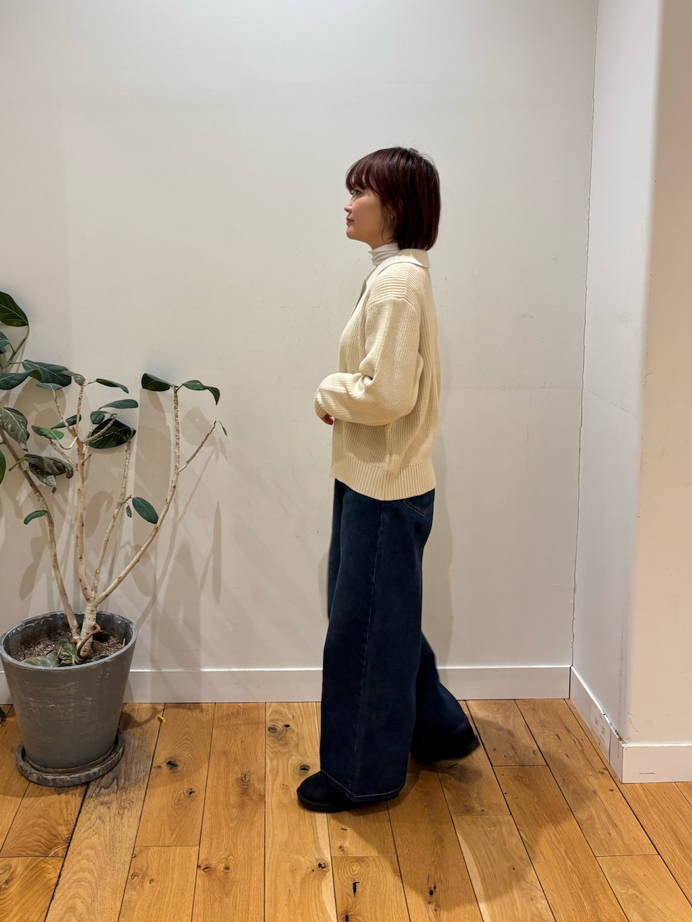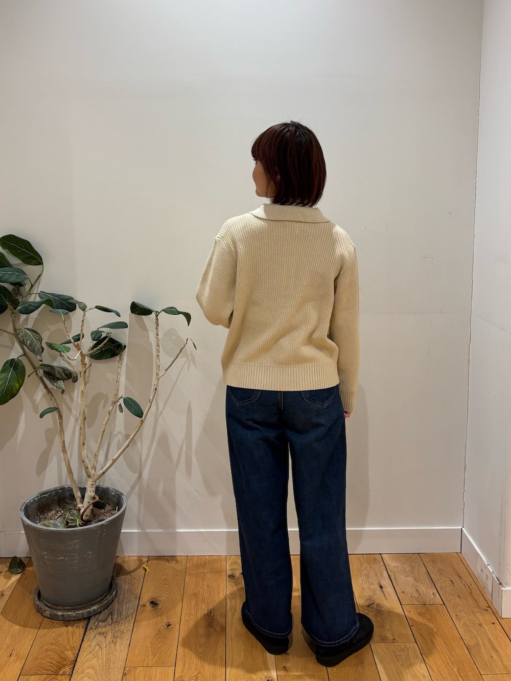 少し大きめの衿なので顔まわりがすっきりして見えますよ🙆♀️色味もこれからの春に向けて活躍しそうな色なので今時期から長く着ていただけます!