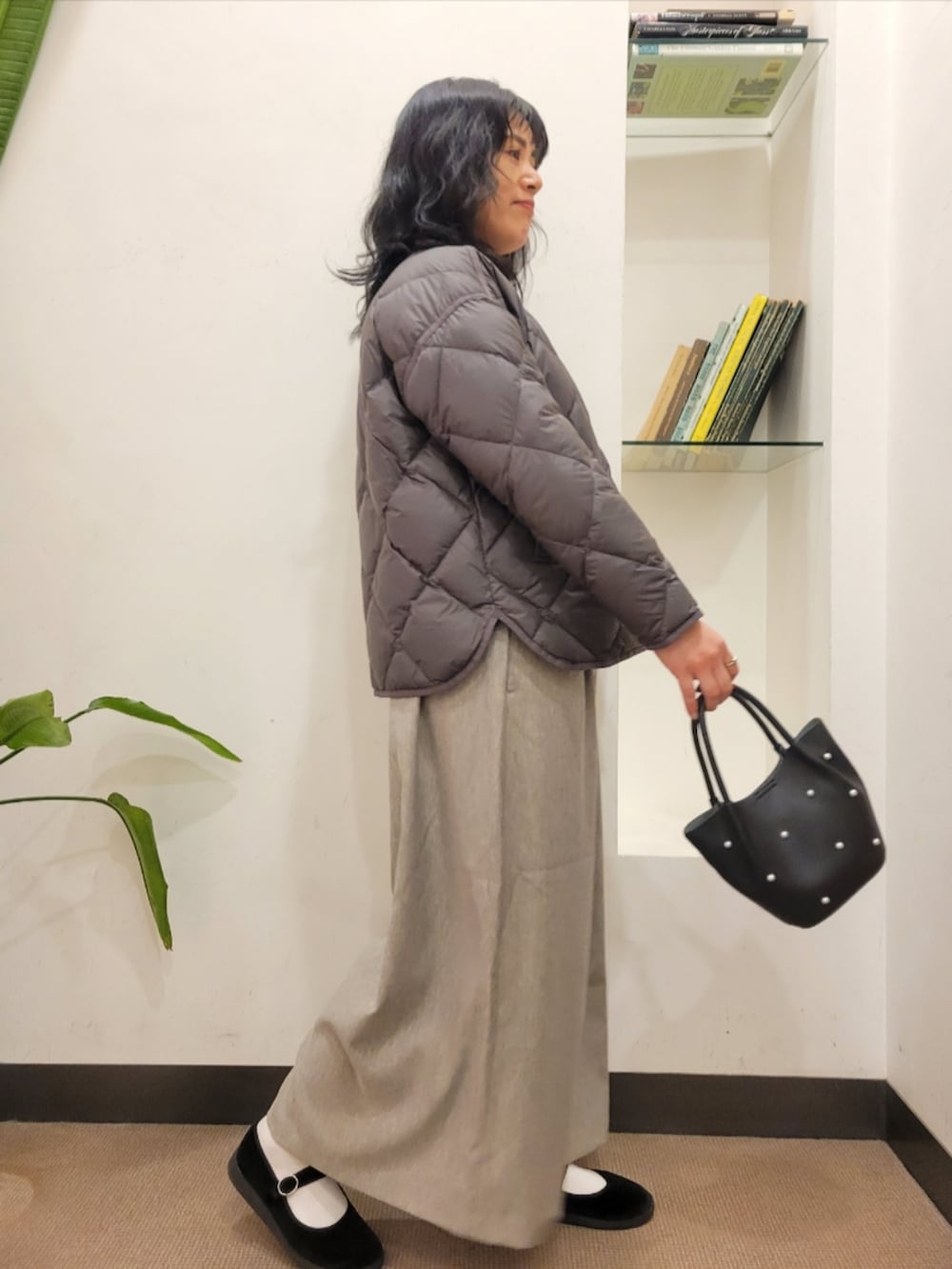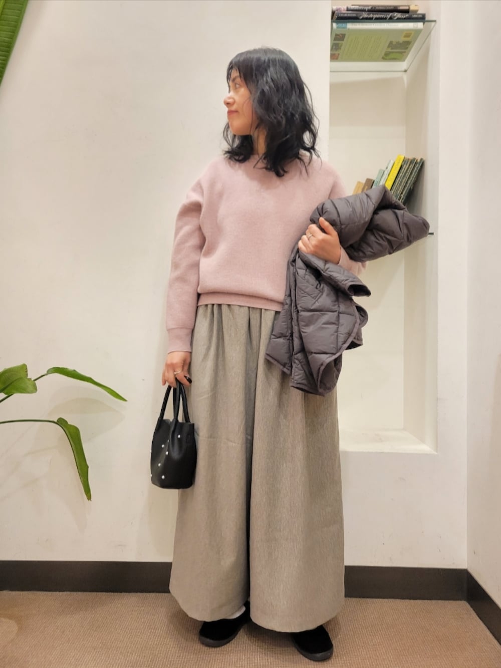 厚手のアイテムも中に着やすいです。