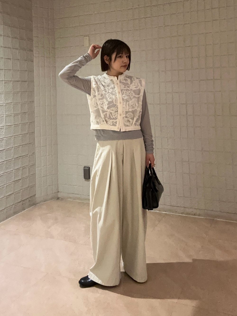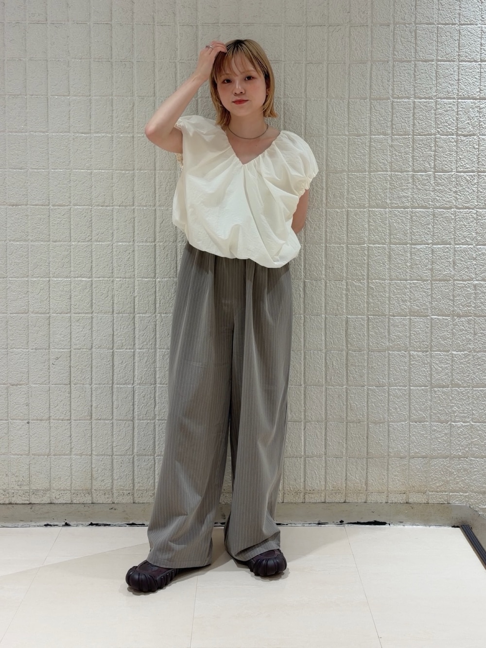 春らしいパステルカラーのニットと新作のボリュームミディスカートの合わせで甘めのコーディネートにしてみました!♡