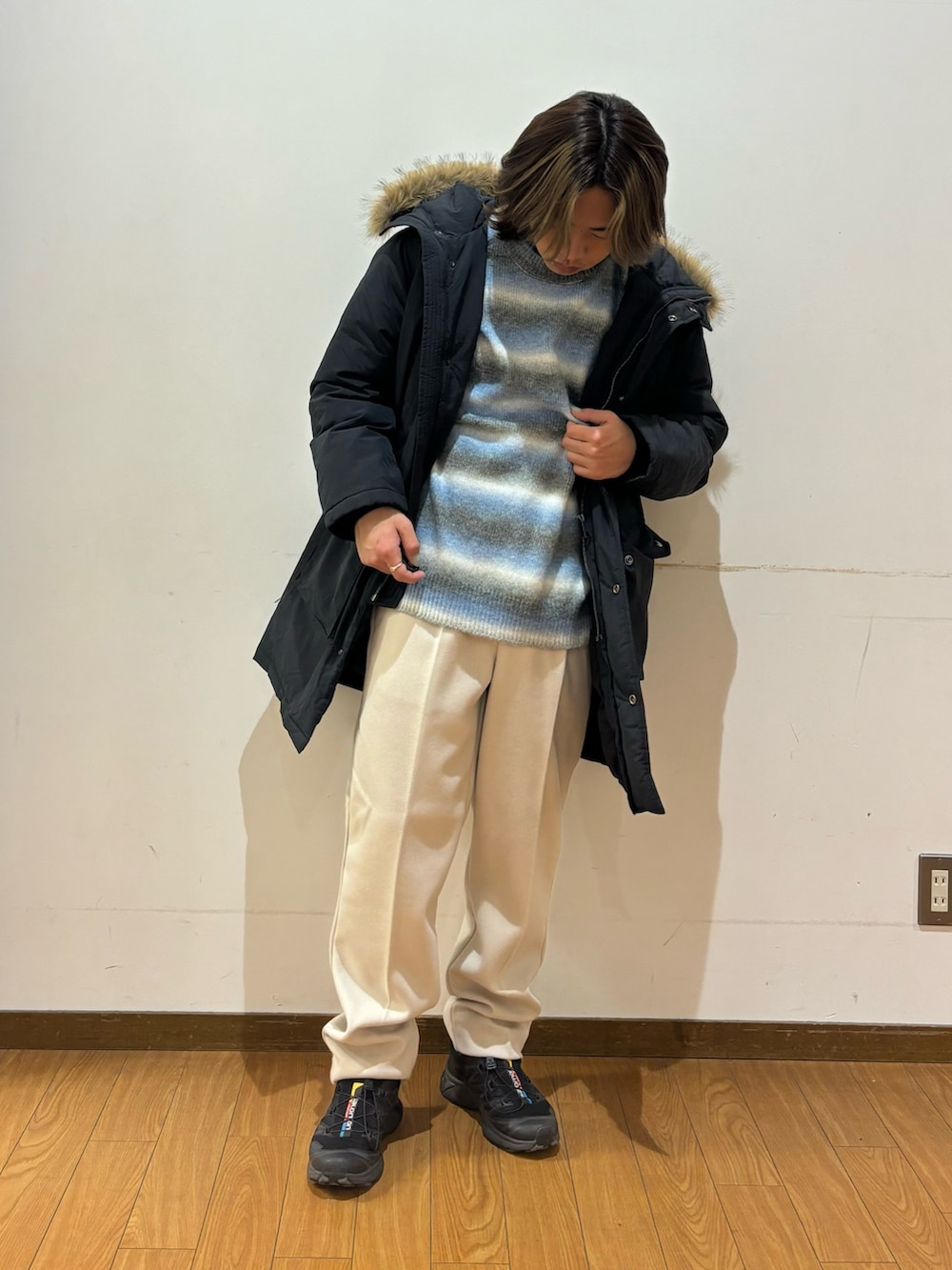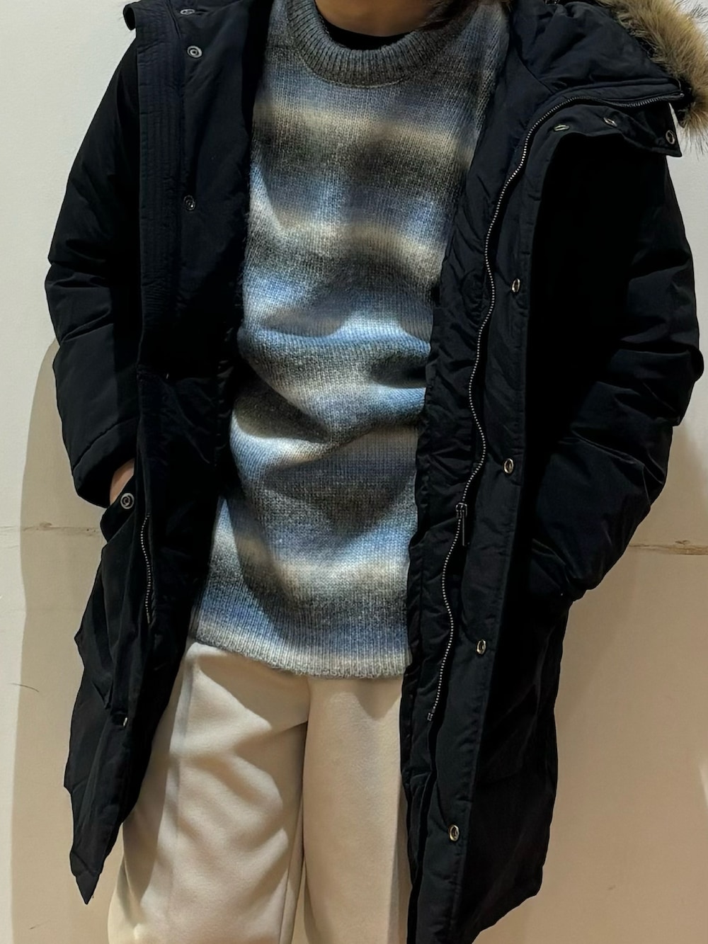 トップスのコートは770フィルパワーのダウンでとても温かいです!ジャケットより丈が長く防寒性が高いので冬の外出の際、活躍してくれます!