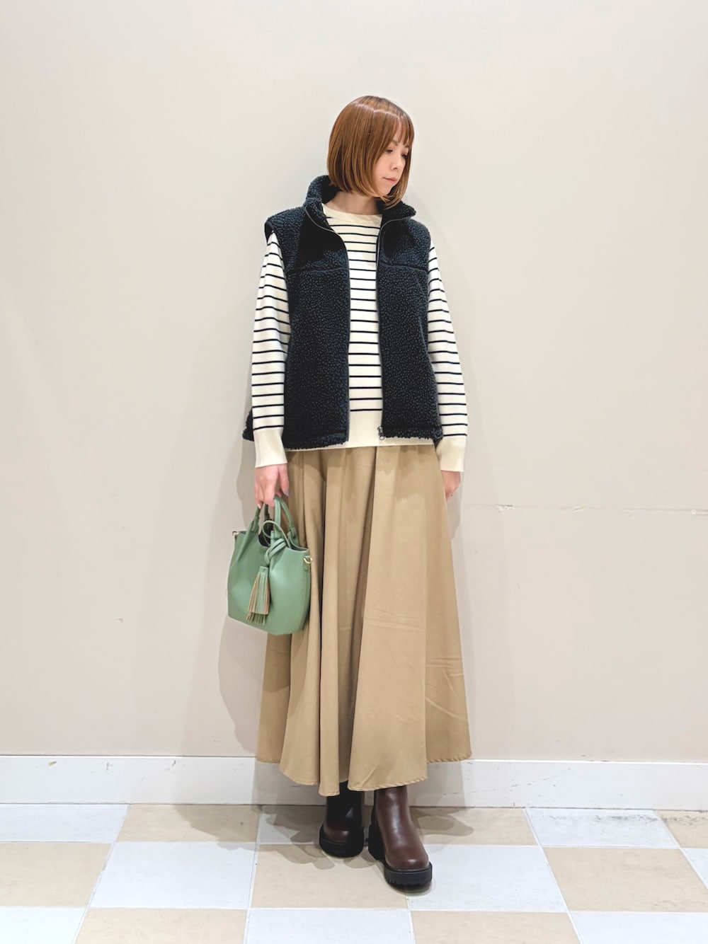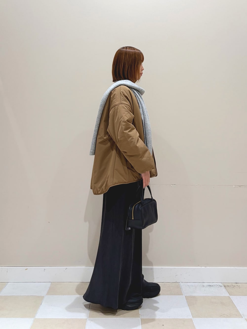 キュプラの落ち感が綺麗なIラインスカートはギャザーが入っているのでフィットしすぎず、すっきり着こなせます。