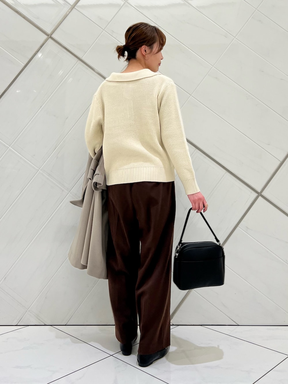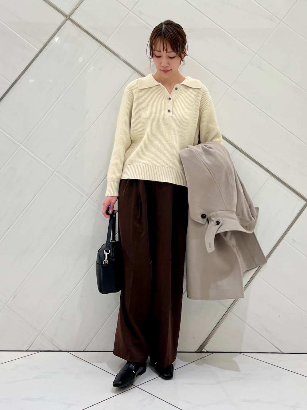 トレンドの襟付きニットは1枚ではもちろん!