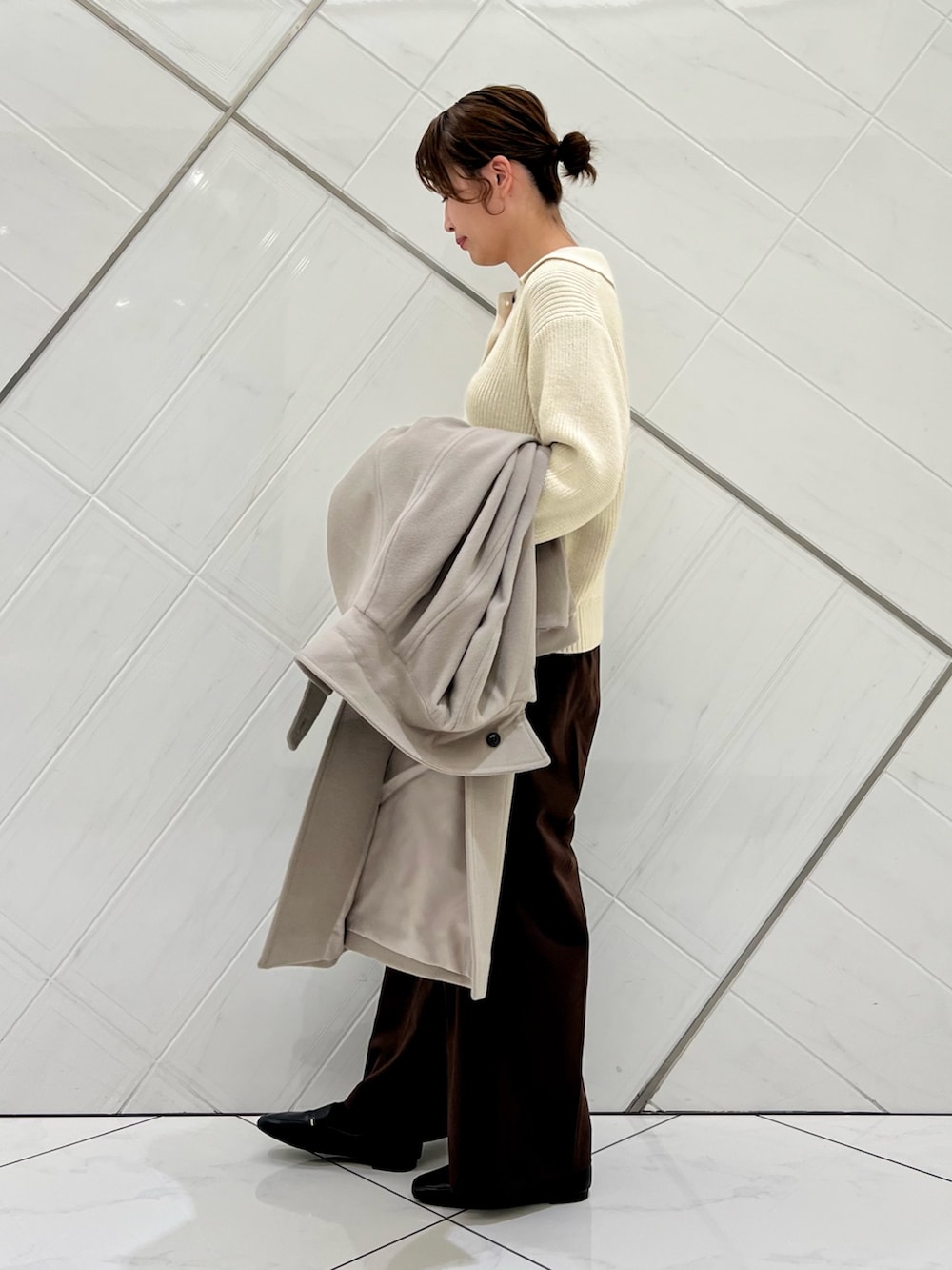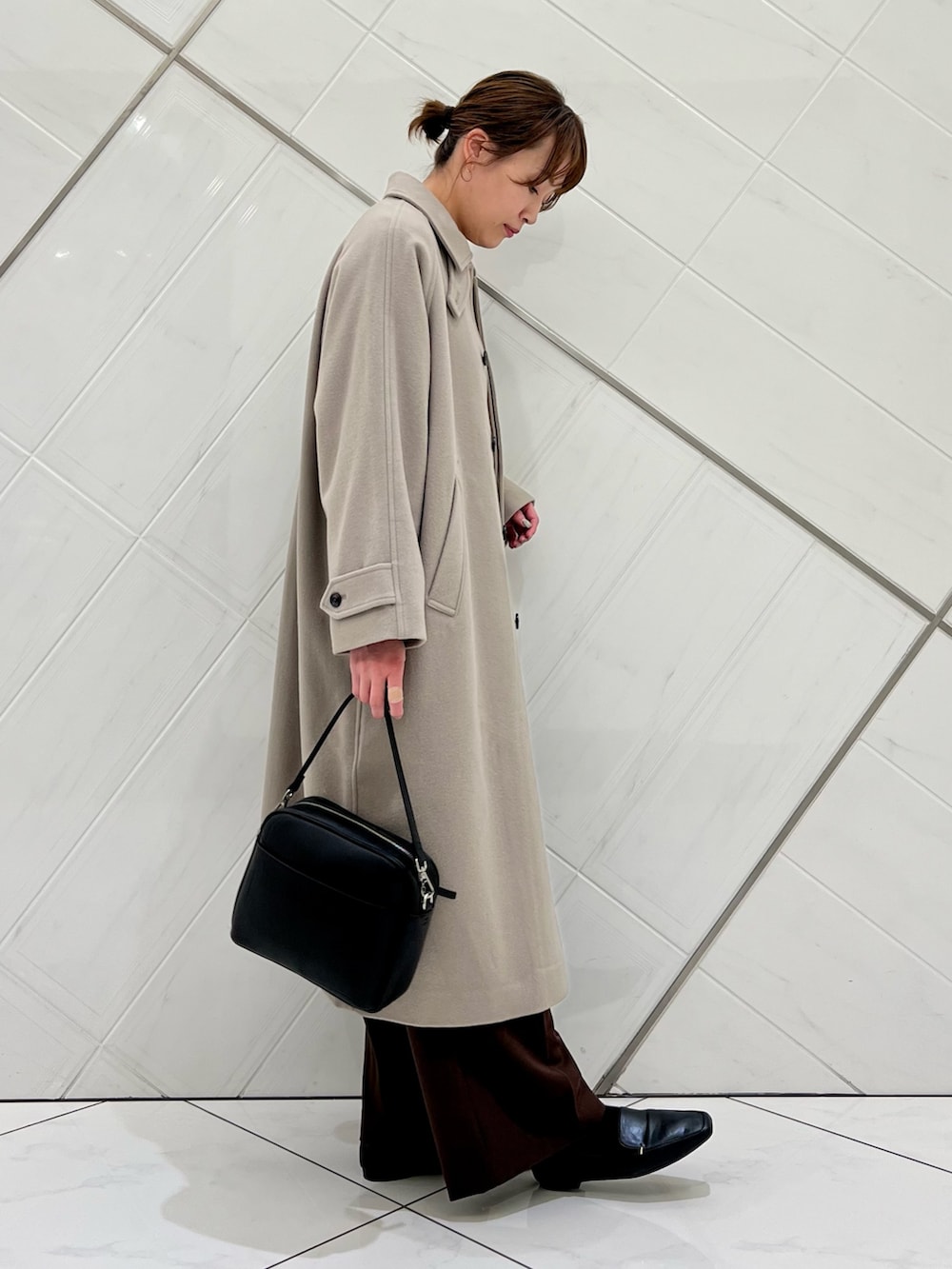 ウールのロングコートはとても軽い着心地で