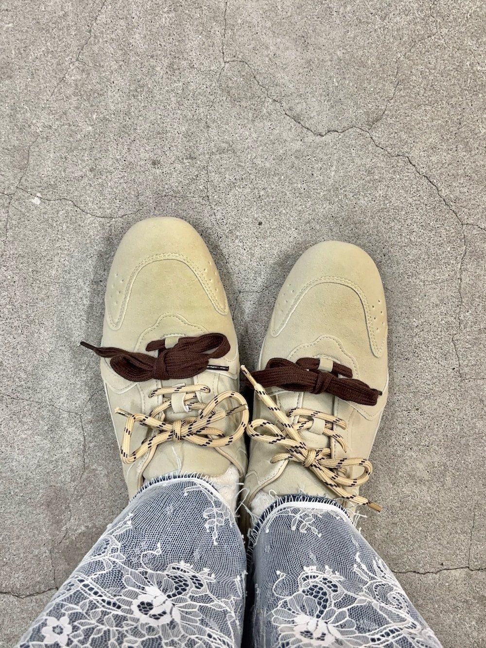 今回は春新作のレースデニムとスニーカーを合わせてみました!3枚目のスニーカーは紐部分が二つに分かれていて、コーデのアクセントに🙆♀️☀️