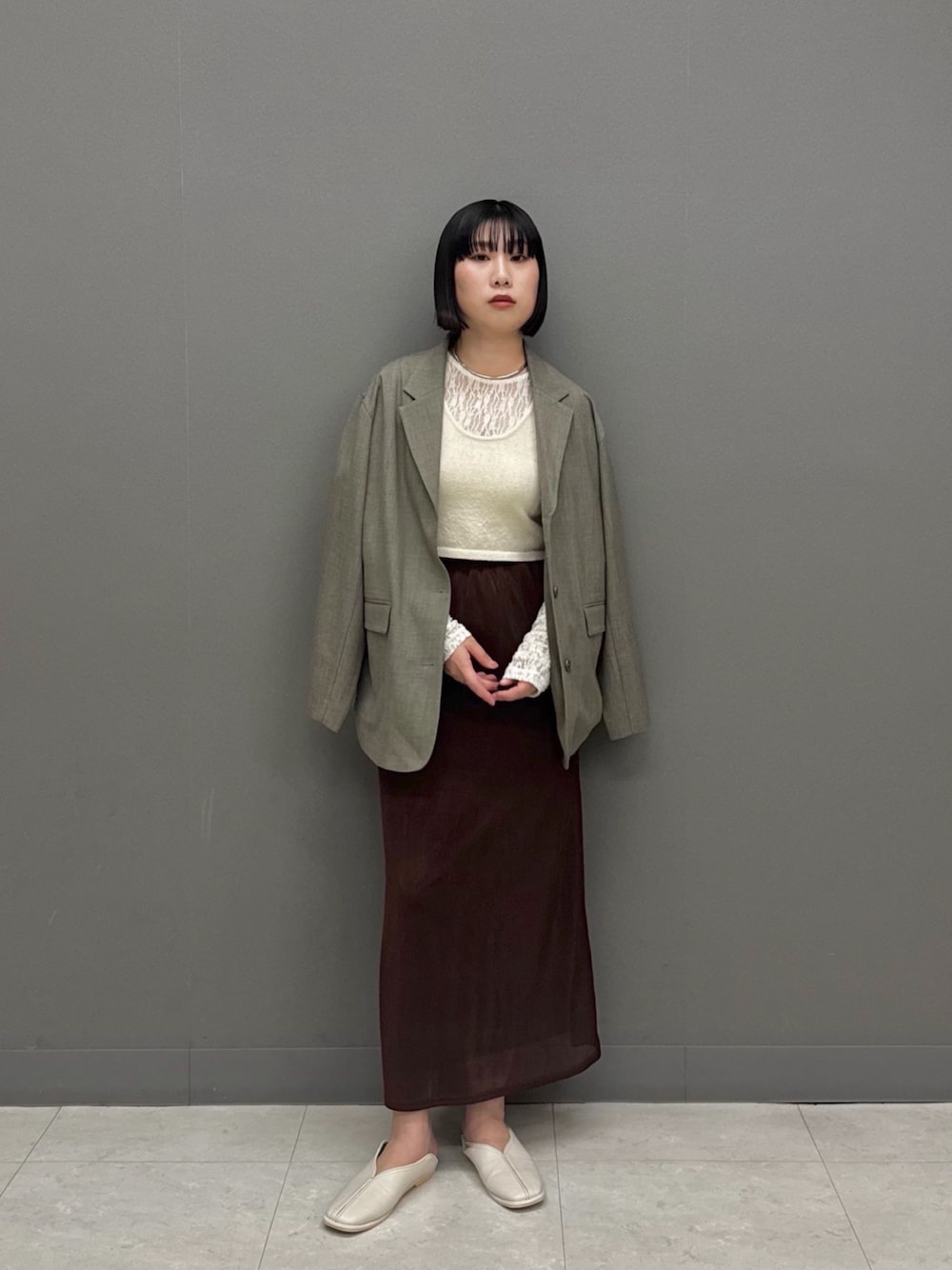 ボトムスはボリュームのあるミディスカートを合わせてよりレディライクに
