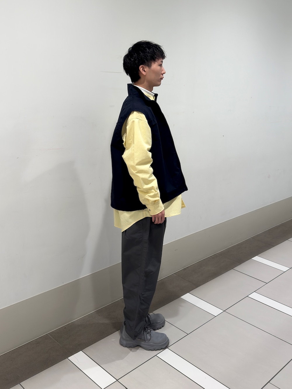 UR TECH ナイロンタッサーベストを主役にUR TECH ナイロンタッサーLSシャツを合わせたレイヤードスタイルです。