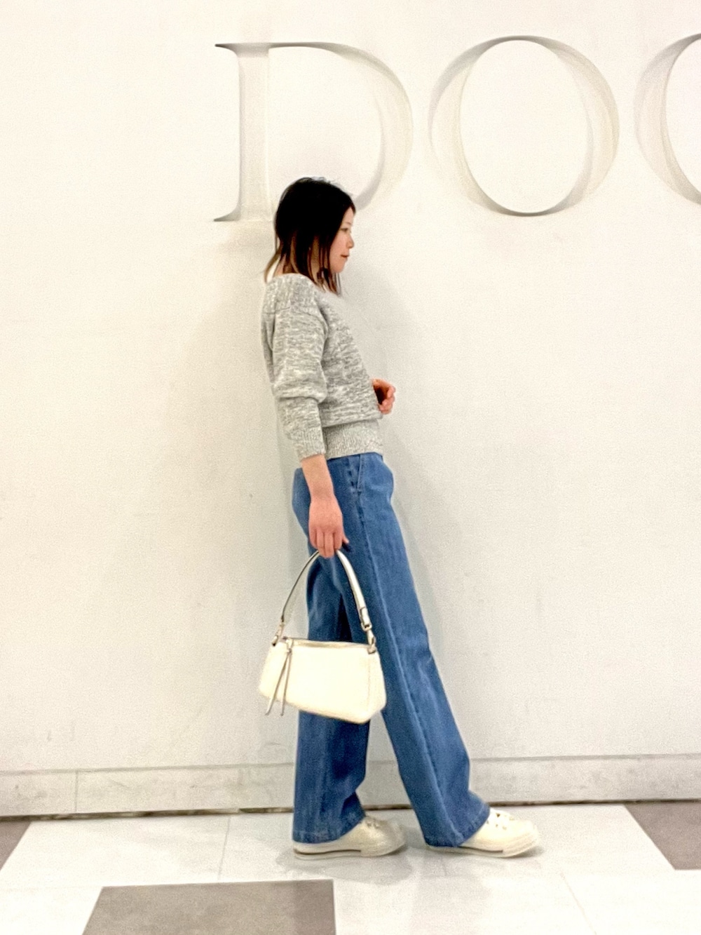 トップスはさらっとした肌触りでチクチク感じることなく着用できる春ニットです◎裾のリブがしっかりしてるのでボトムスとバランスがとりやすいです👌🏻