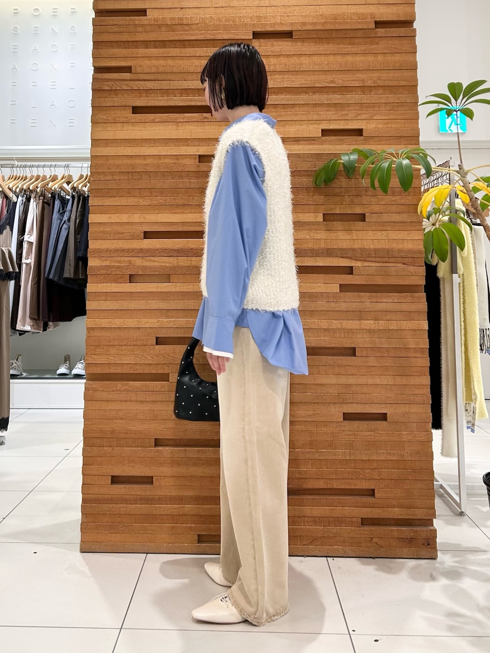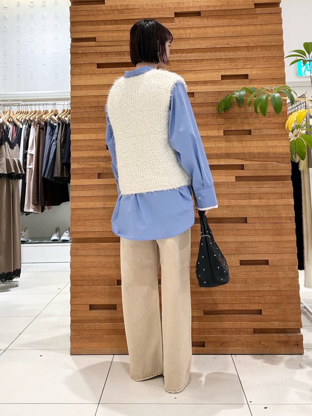 大人気のモールフェザーベストで春先まで使えるコーディネートです 🌸