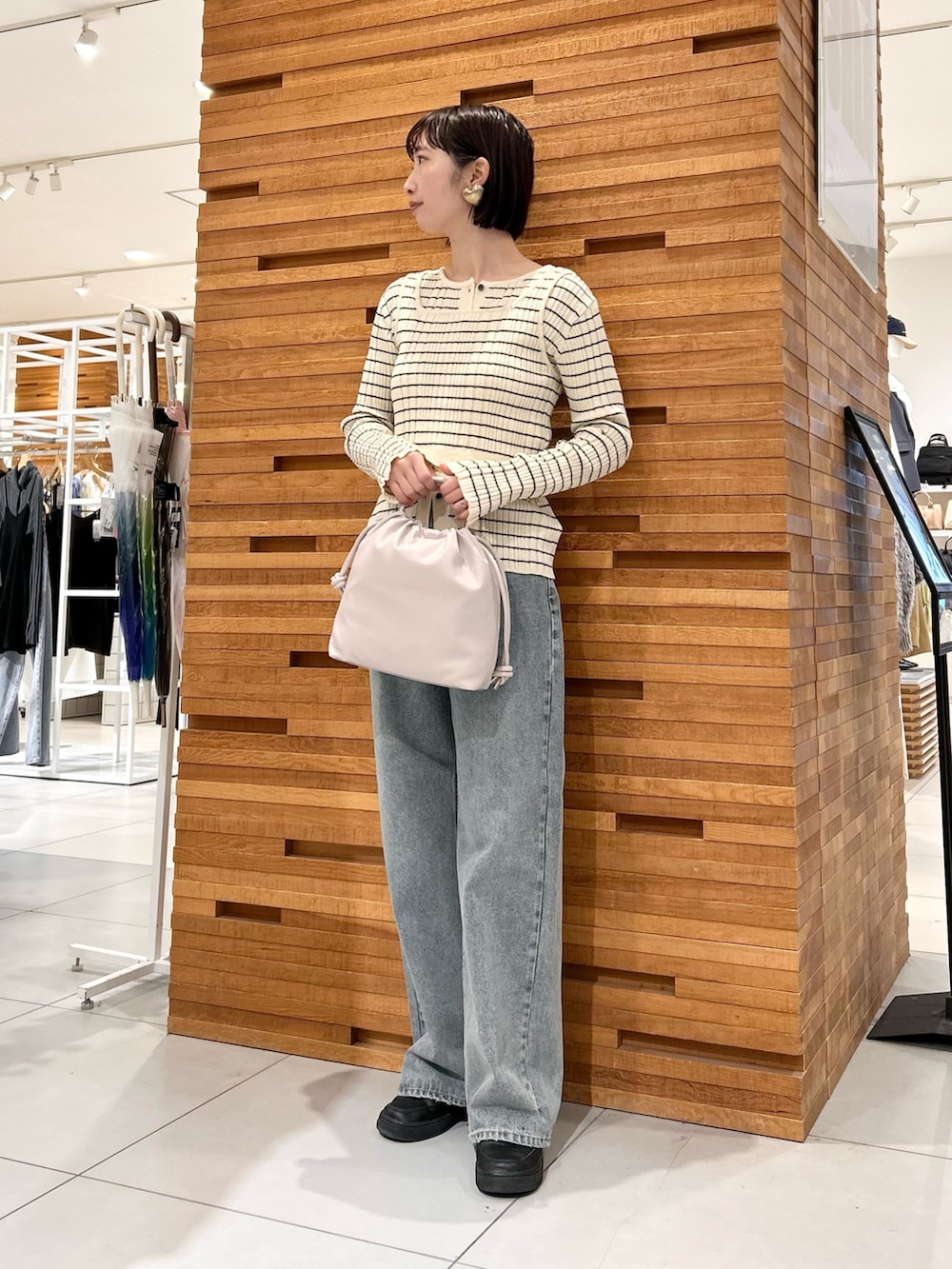 ボーダーを入れるだけで季節感が新鮮になるので季節の変わり目から着れるおすすめニットです 😊