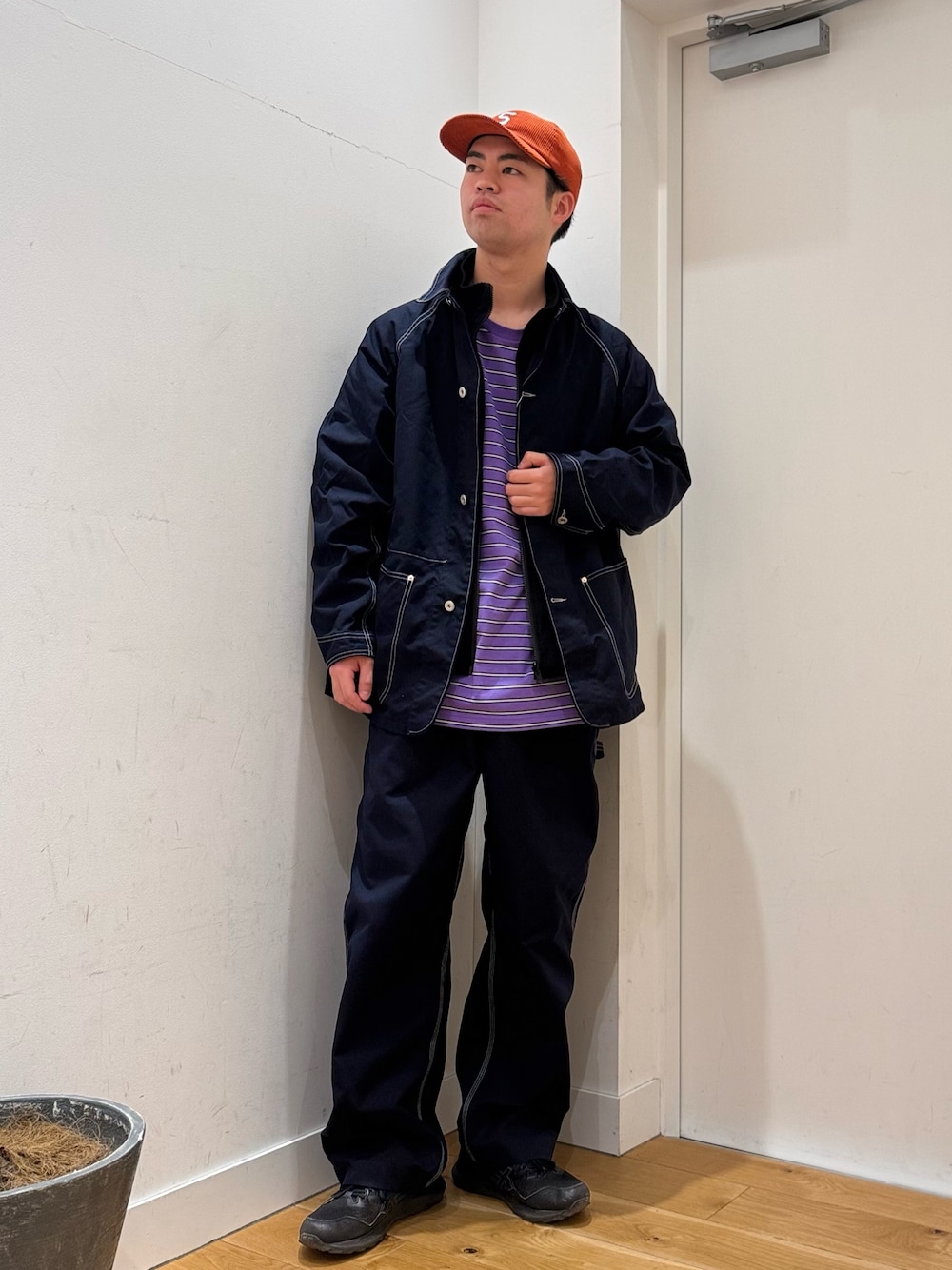 パンツは36のサイズで少し腰に落として履いています。