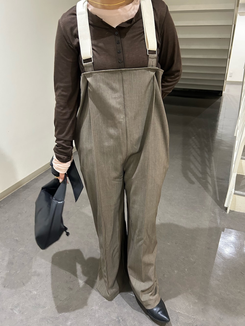 ヒールのあるシューズで合わせると引きずらずに着用出来ます!