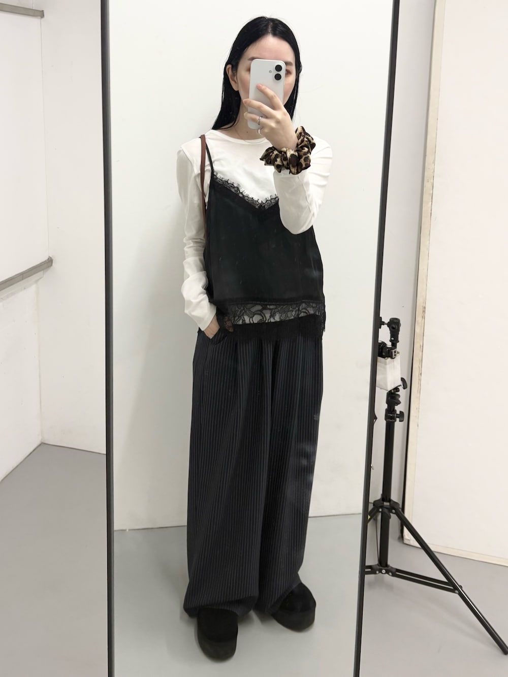 シンプルなトーンのお洋服にナップサックでアクセントつけてみました☺︎