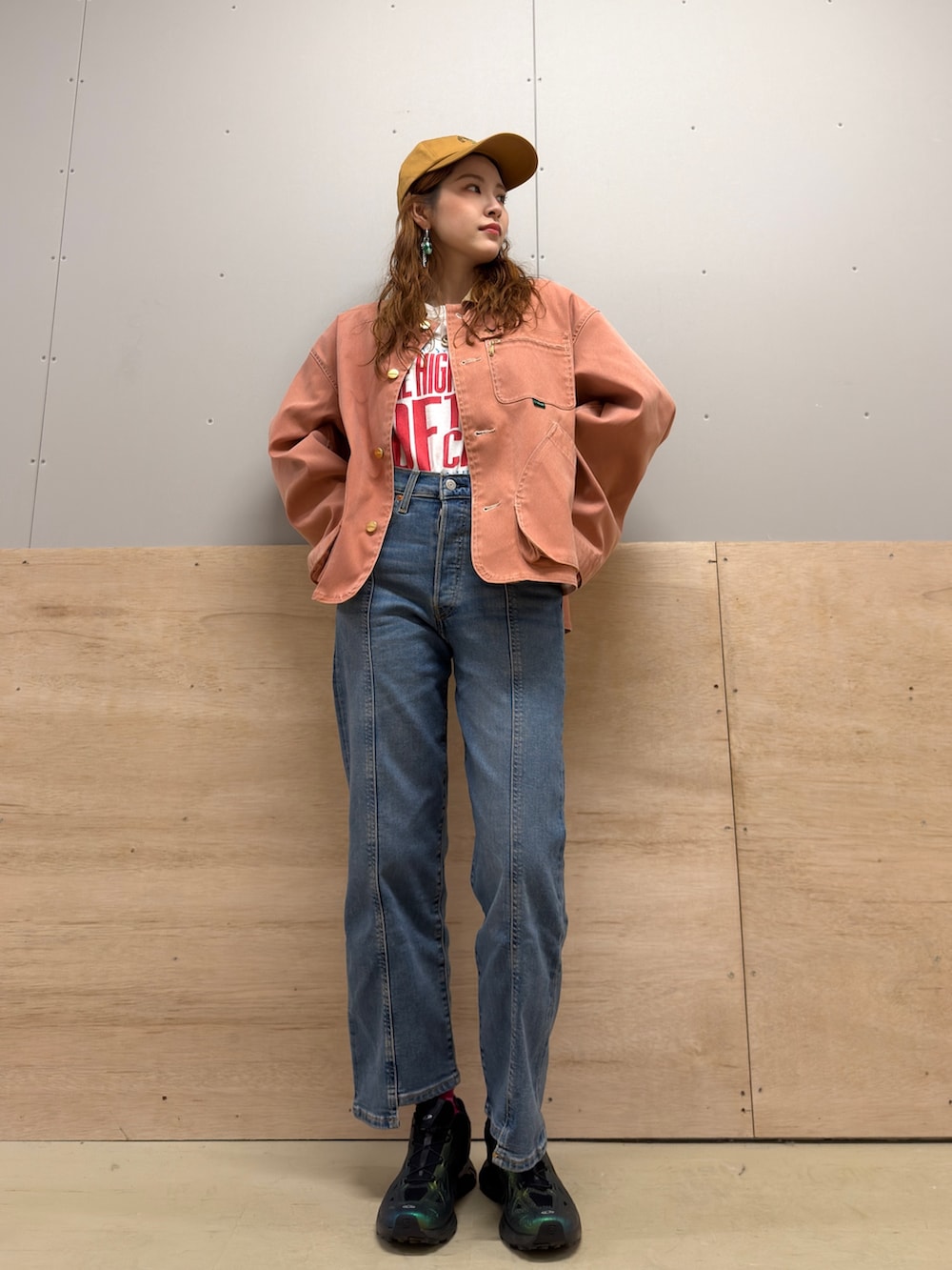 ピンクは可愛くなりすぎるイメージがありますがl.l.beanのジャケットはデザインがカジュアルなので挑戦しやすいです🩰